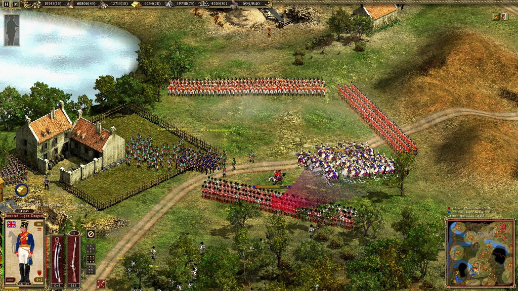 그러자 적들이 와해 되고 사기가 바닥을 치게 됩니다 이때 드라군(용기병) 을 투입하여 사격을 개시후 한번더 사기를 꺾어트립니다.