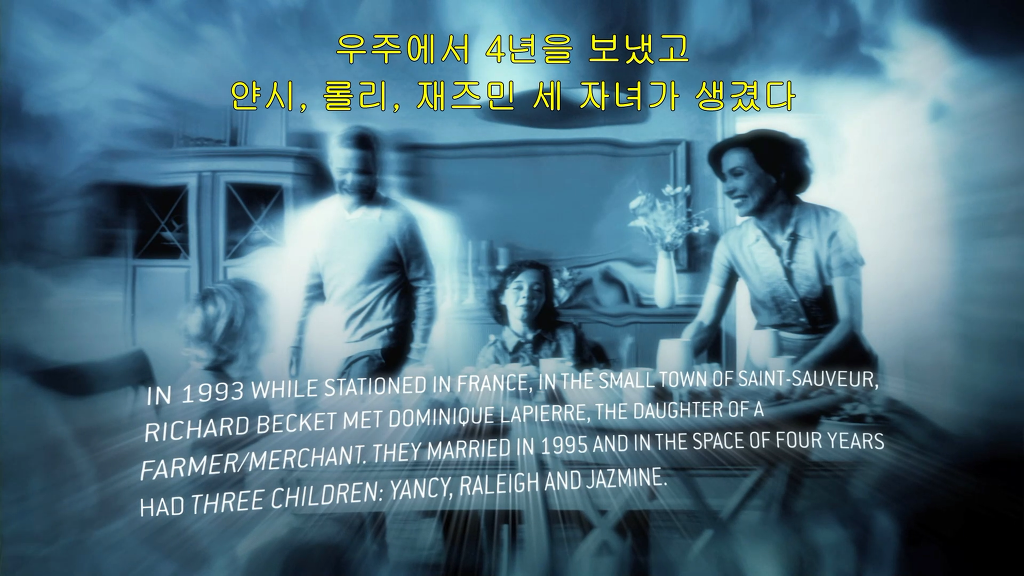 오역이네요... 우주에서 4년을 보냈다니....?????? "그들은 1995년에 결혼했고 4년 사이에 얀시, 롤리, 자즈민의 3아이를 가졌다." 로 수정해야지... 이거 돈 주고 산게 이러면 쓰나.