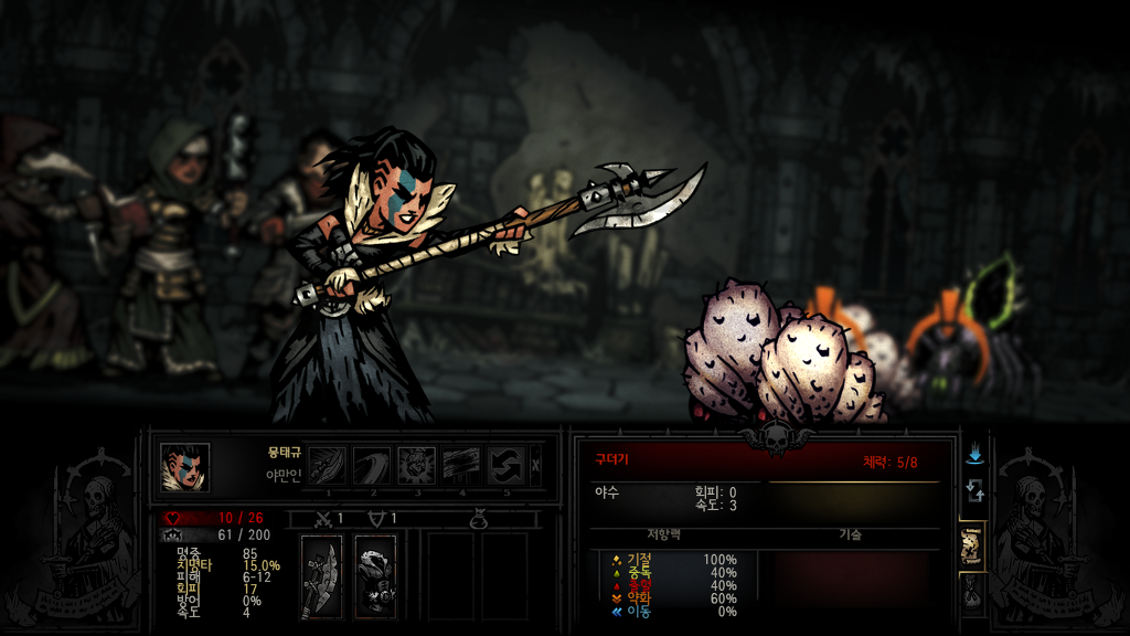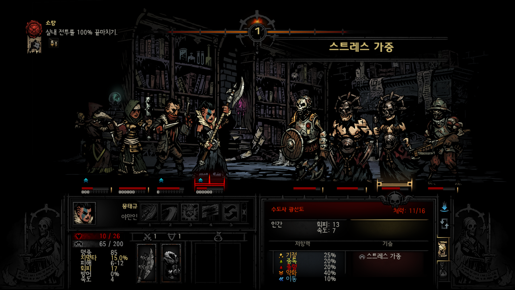 운좋게 역병의사와 노상강도에게 스트레스 공격이 집중되서 다행이였네요 야만전사가 한방만 더맞았으면