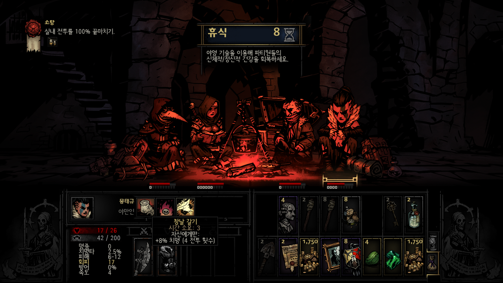 야만인과 노상강도의 캠핑스킬을 활용합니다. 야습은 필수 그나저나 초반 쪼렙영웅들이라 캠핑스킬이 형편없군요..