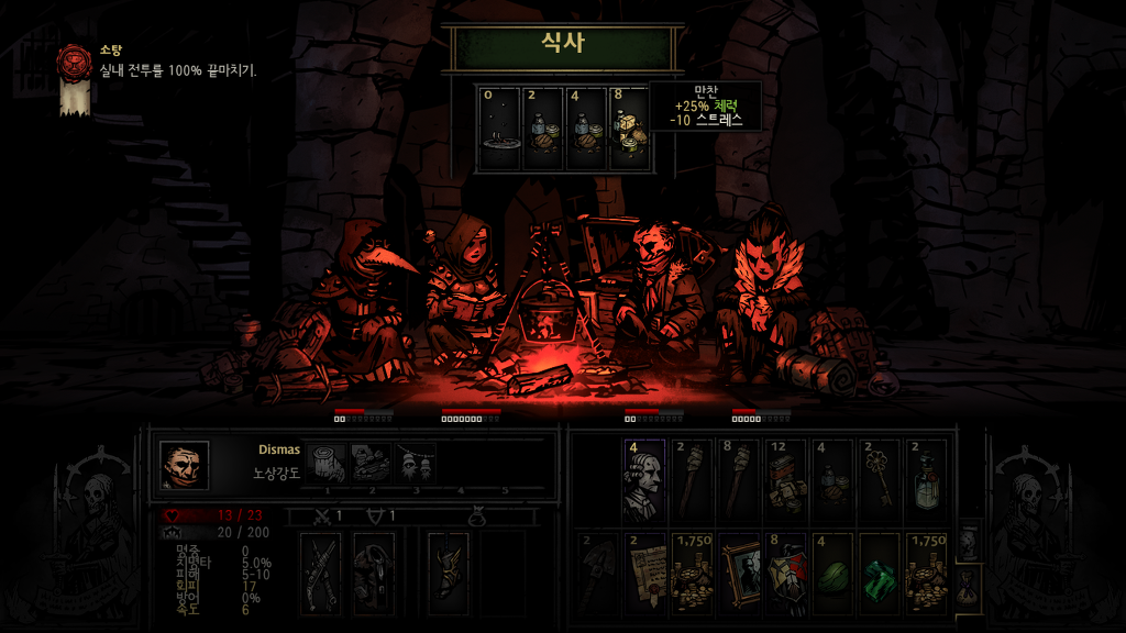 이게임엔 체력/스트레스가 있는데 스트레스가 100이되면 영웅은 기상OR고통을 받게 되는데 경험상 80~90퍼센트가