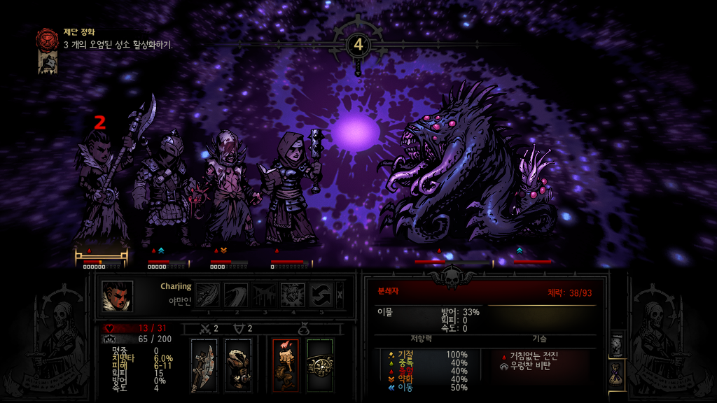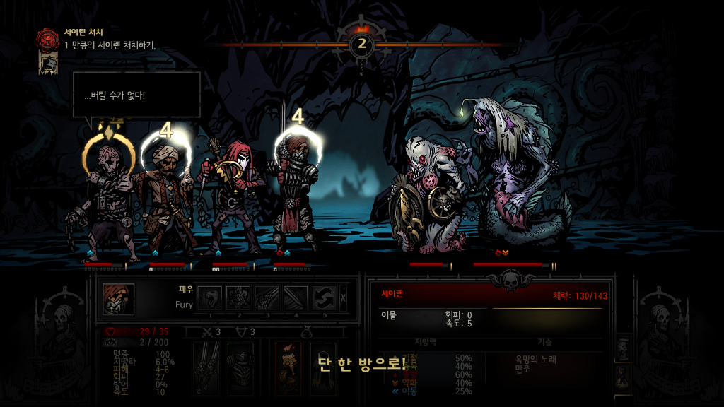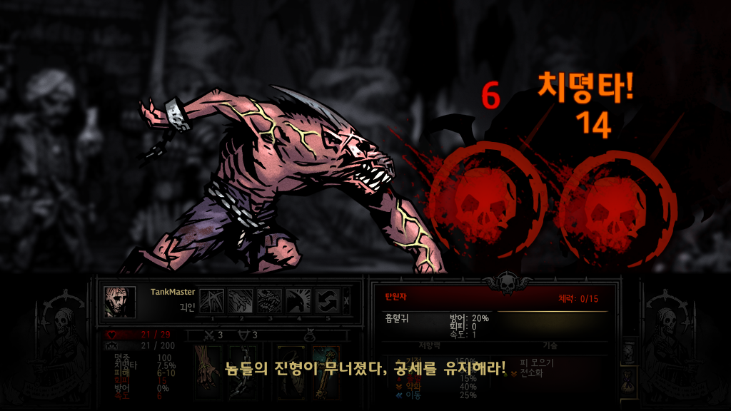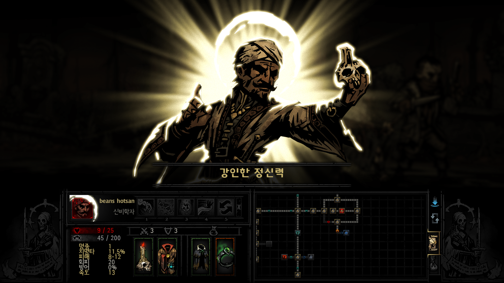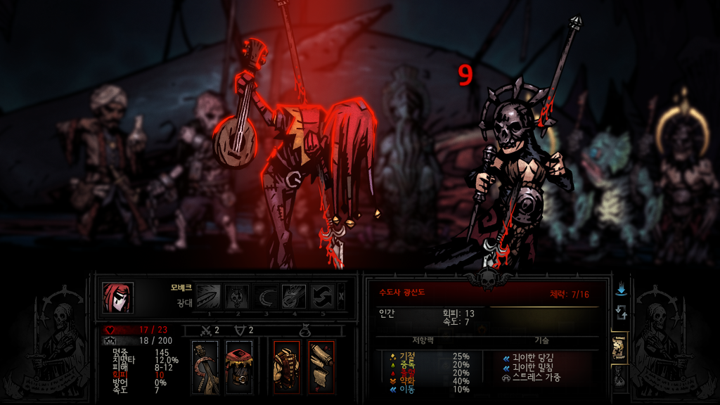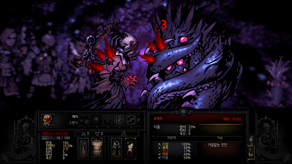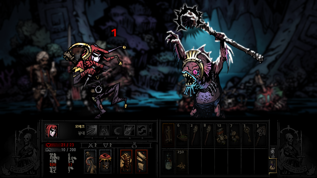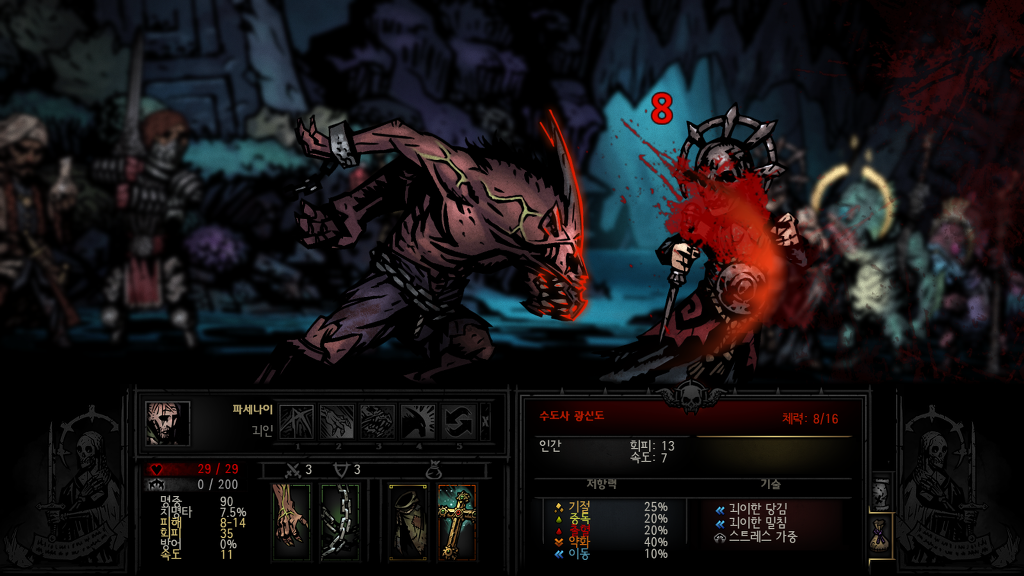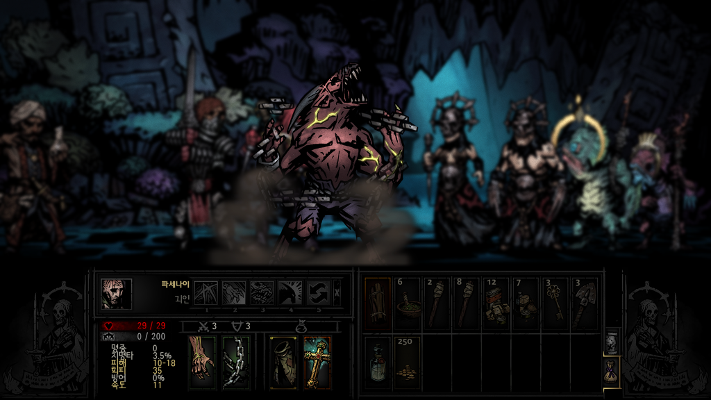 다키스트던전내 최고의 공격력을 자랑하지만 또한 변신할때마다 스트레스를 올려 쓰기힘든 양날의검
