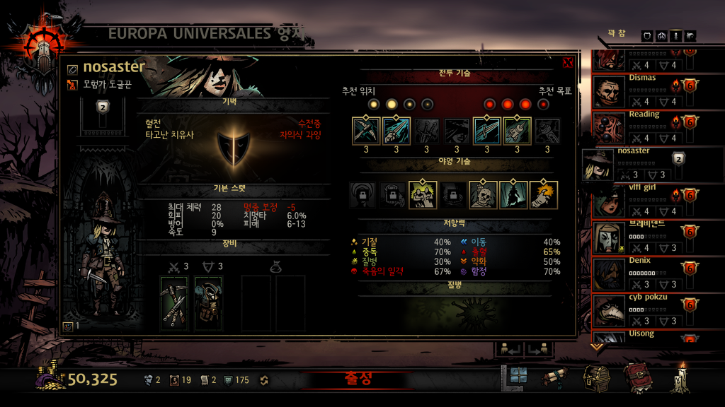 캠핑능력과 역병의사와 더불어 유일하게 아군의 질병을 치료할수있습니다 하나정도는 있으면 매우좋아요