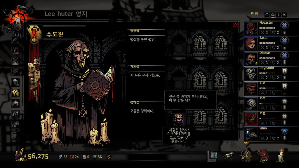 고행자를 제외한 다른애들이라도 술집과 수도원에보내 멘탈을 회복시키게 합니다.