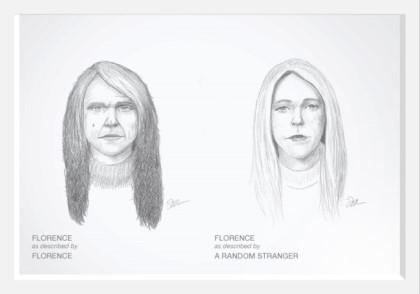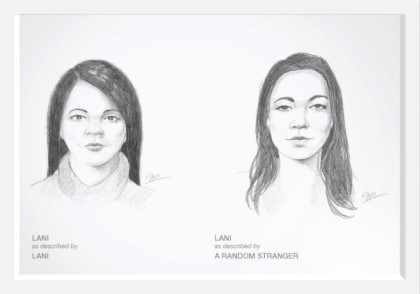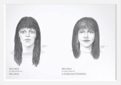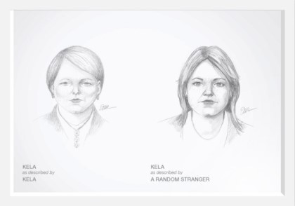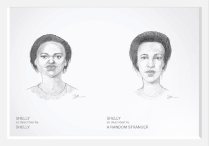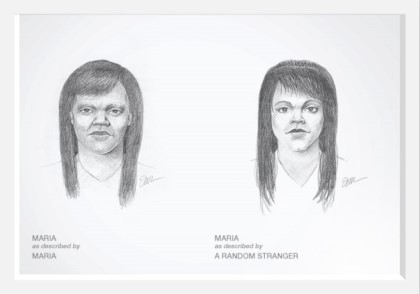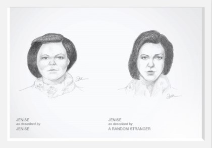 앞에 앉은 여성이 자기 얼굴을 묘사하는 이야기만