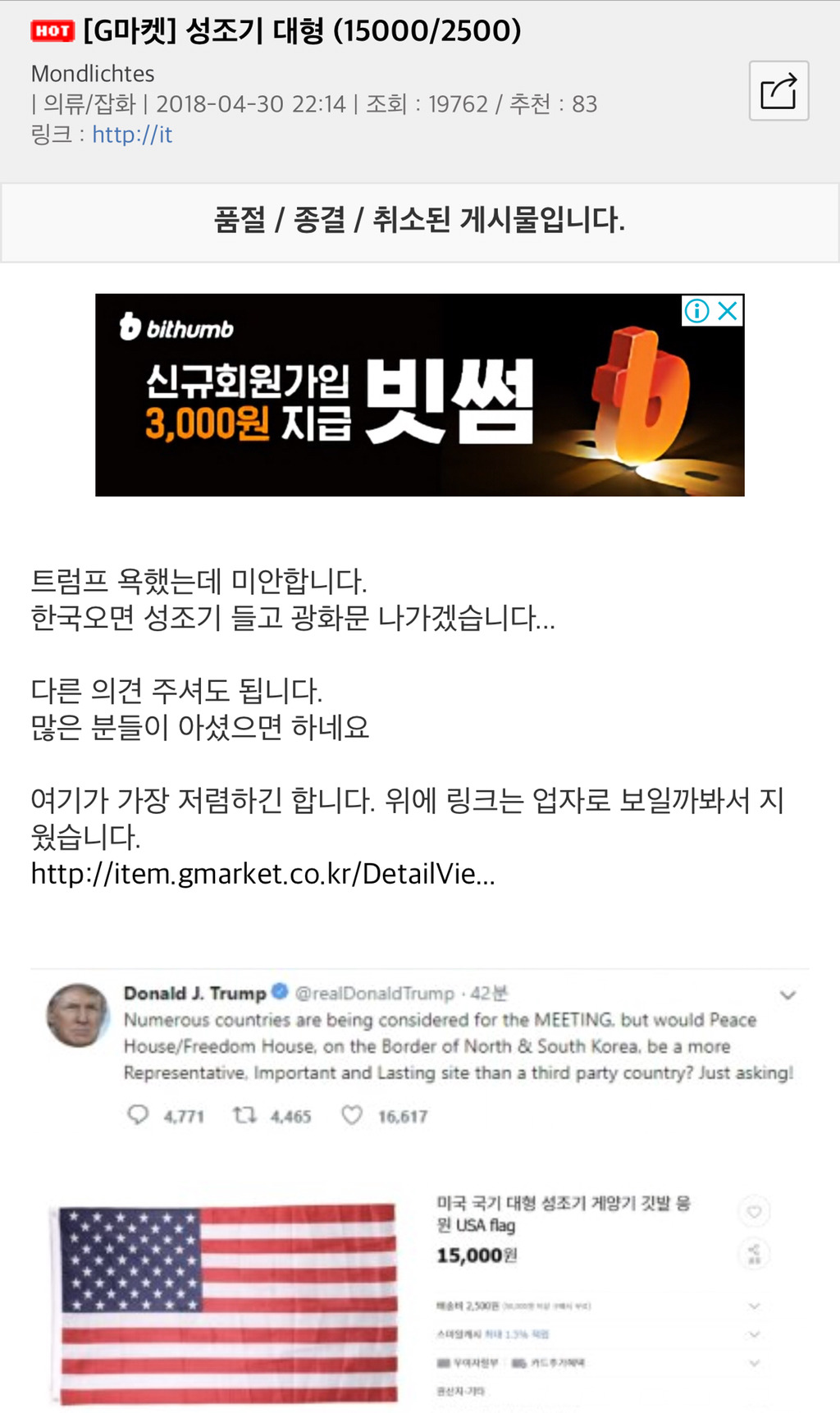 뽐뿌게시판 ㅎㄷㄷ 작성자뱌실이|작성시간18.05.01|조회수535 목록 댓글 1 글자크기 작게가 글자크기 크게가 어버이연합 어리둥절할듯ㅋㅋㅋㅋㅋ 다음검색 현재 게시글 추가 기능 열기 북마크 신고 센터로 신고 댓글 댓글 1 댓글쓰기 답글쓰기 댓글 리스트 작성자花美男 | 작성시간 18.05.01 오 세이 캔유 씨? 댓글 전체보기