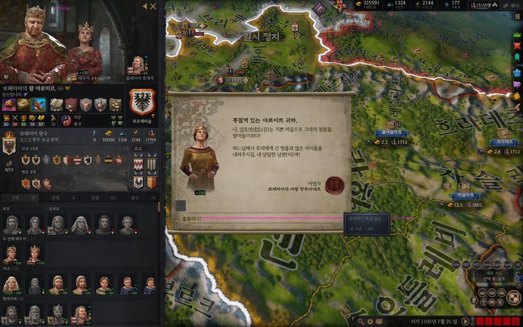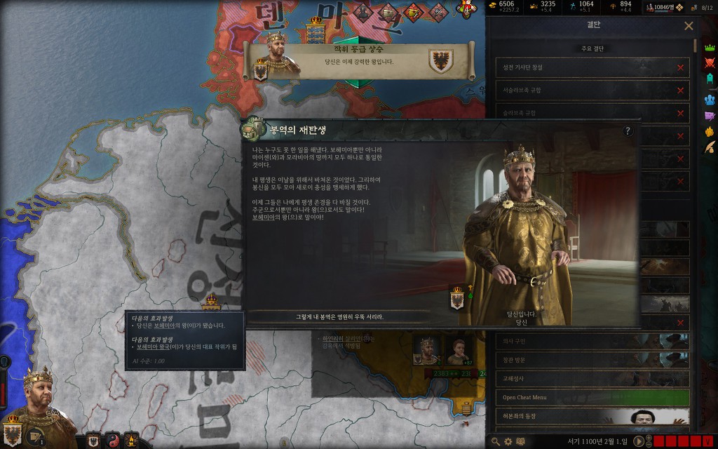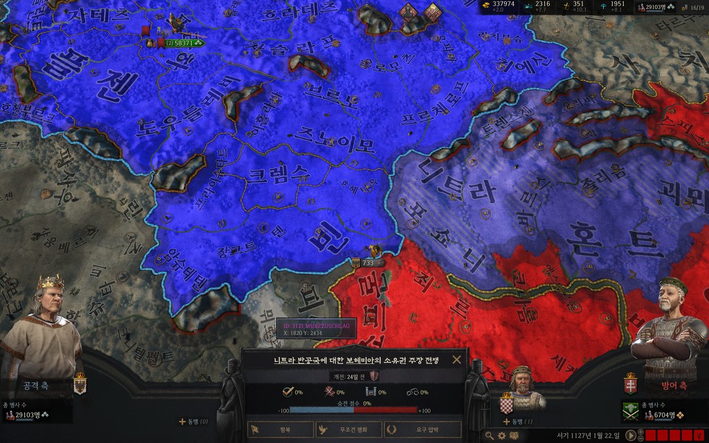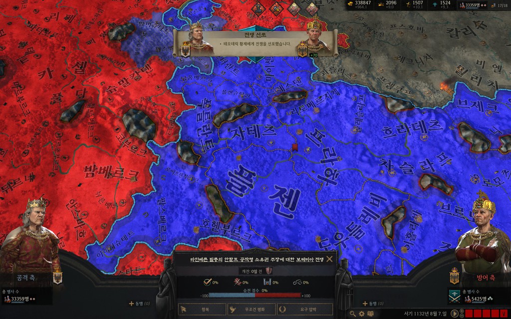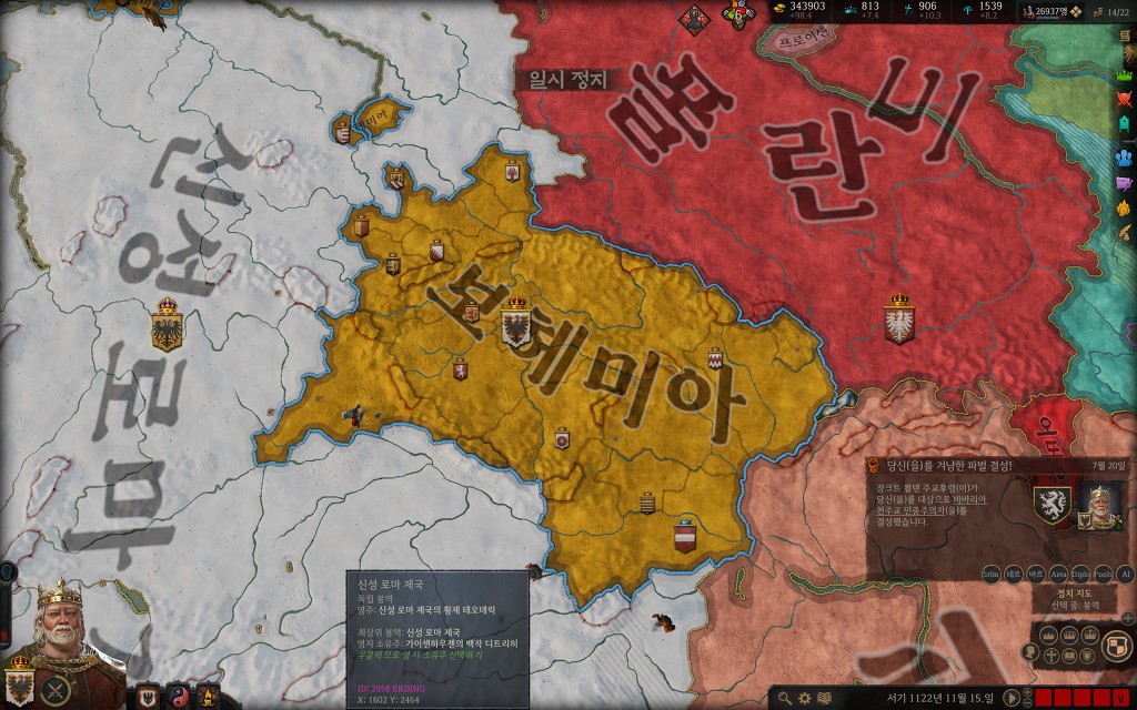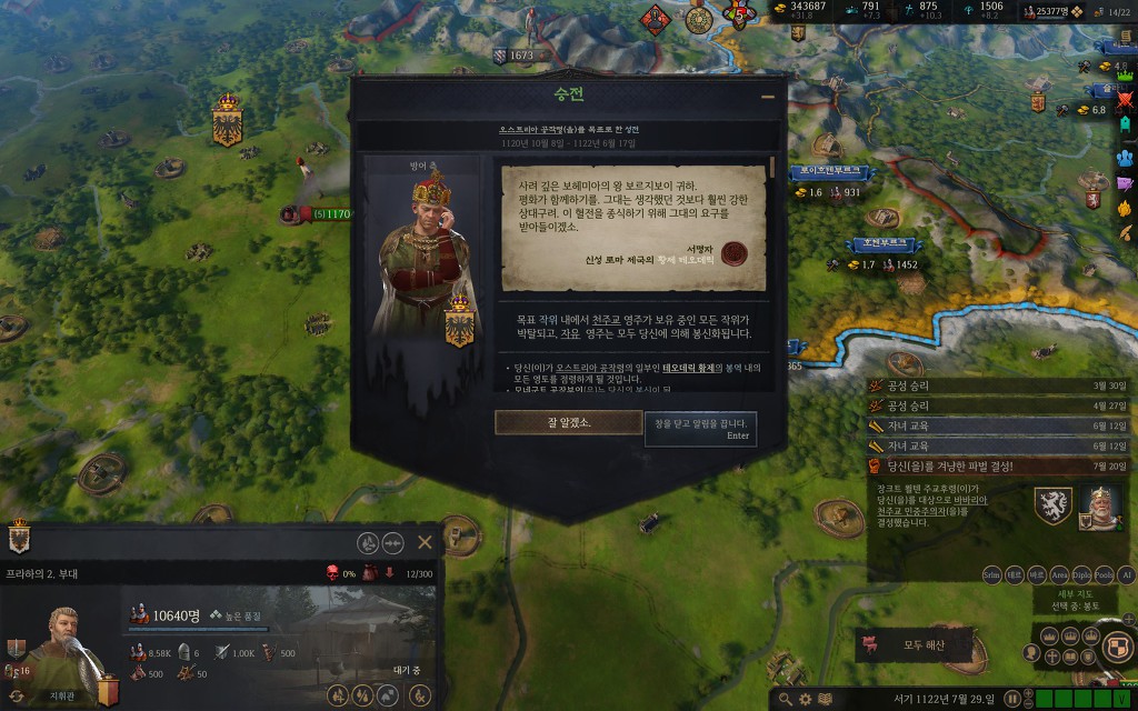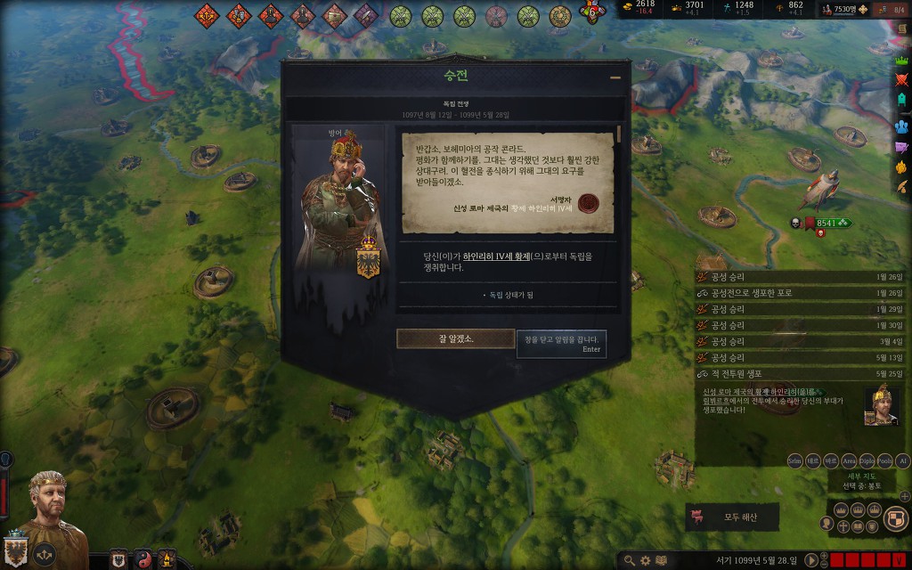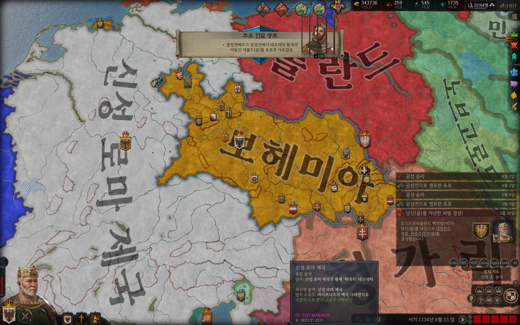 신롬 줘패서 땅좀 뜯어먹으니 보헤미아 왕국으로 가는 길이 열렸네요 .