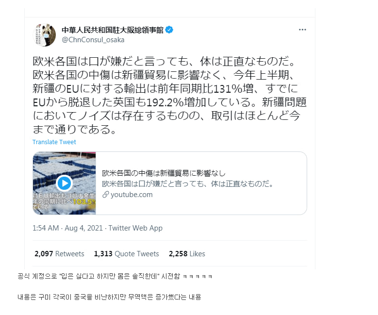작성자코르 작성시간 21.08.06 쓸데없는 어그로 끄는게 중국 외교 전통이 됐나? 무역액이 증가했다는건 자기들도 그 무역을 통해 얻는게 있다는건데 왜 쓸데없이 상대를 자극하고 난리지?