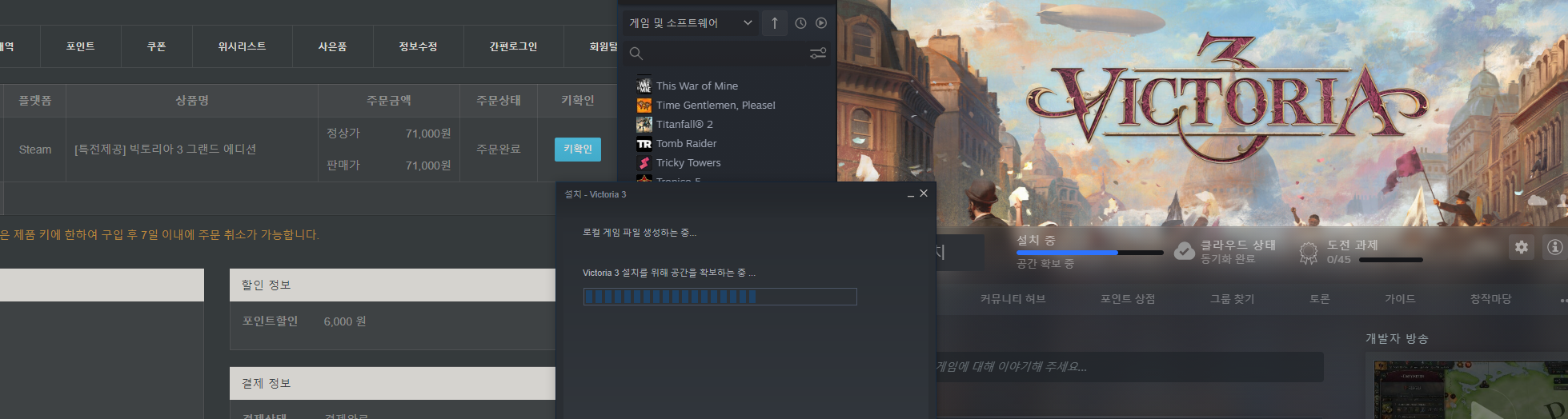 어제 옥냥이 유툽에서 빅토리아3 플레이하는 영상을 보고 참지 못하고 질러버렸습니다.