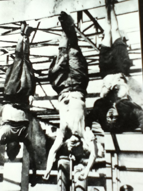 자세한 사진을 보니 민중들에게 심하게 발길질 당해서 무솔리니 머리가 아주 곤죽이 되었더군요