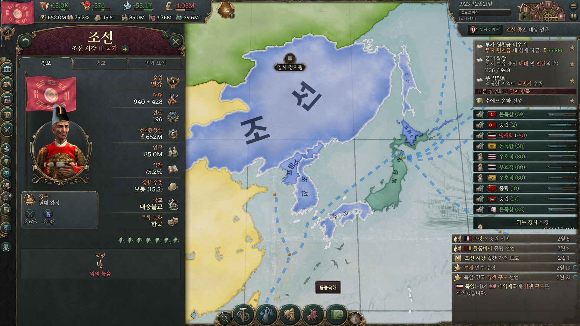 작성자눈사람no.3 작성시간 22.11.12 조선플레이버 팩이 일본의 각 번 이벤트를 구현하면서 기존 세이브를 꼬아버리는 문제가 발생했습니다 ㅠㅠ 저도 그래서 새 게임 중... 모더에게 구버전 파일이 있을런지 모르겠는데 진짜 패독겜은 업뎃 중지시키고 플레이해야 에휴 ㅋㅋㅋ;; 새 게임 여시면 조선이 대승불교가 아니라 유교로 구현되어있습니다