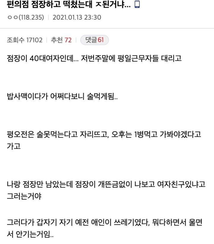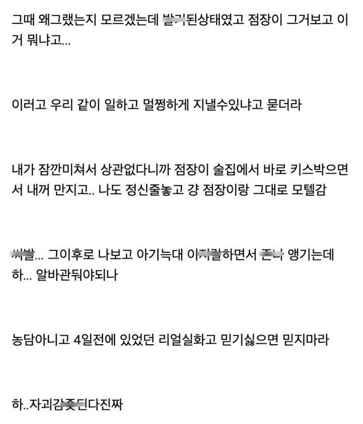 작성자RichardDawkins 작성시간 22.11.20 뭐 점장이 유부녀만 아니면야 일단 범죄는 아니지만
