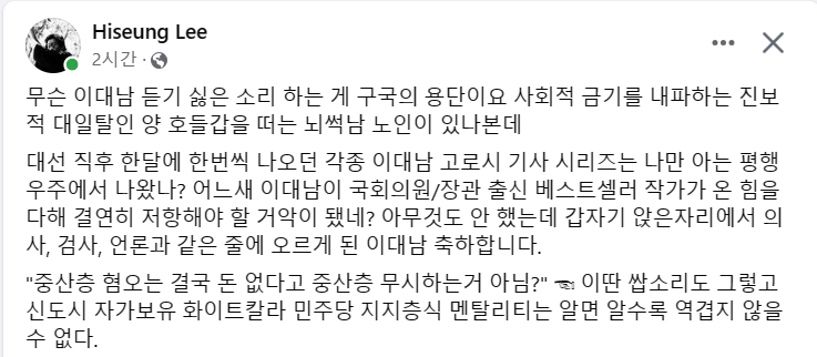이대남을 까는 민주당 지지자에 대한 반감 인 거 같습니다