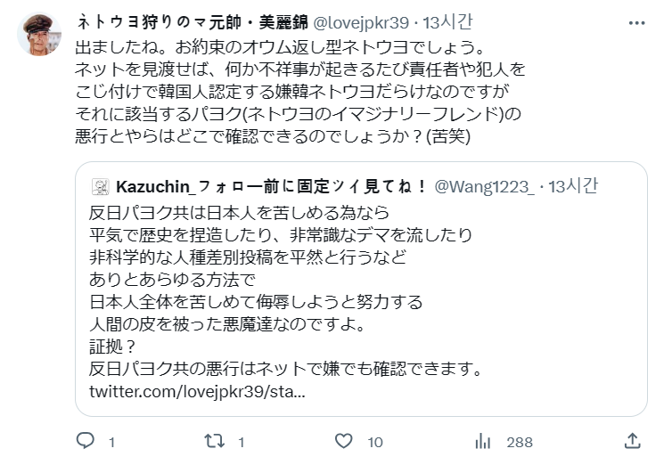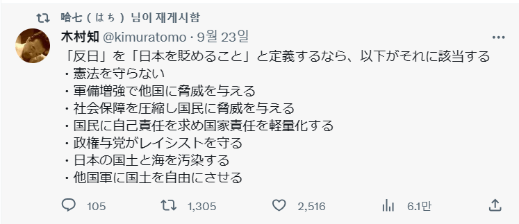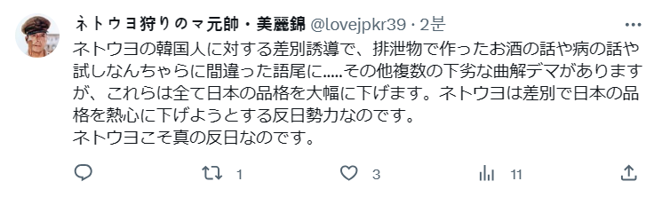 미움을 받는 것에는 이유가 있습니다. 반일 좌익 한국인은 겸허히 자신들을 반성합시다. 저는 한국인을 일괄로 취급하지 않습니다! 진짜 친구도 있고 멋진 분도 알고 있으므로. 하지만 반일 좌익 한국인을 미워하고 자비가 없을 뿐 입니다