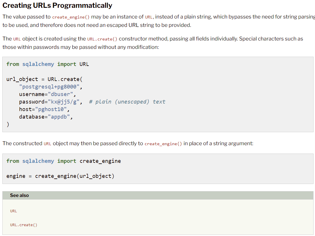 방문해서 봅시다 그러면 접속 방법에 대해서 SQLAlchemy document까지 소개하면서 보여주고 있습니다.