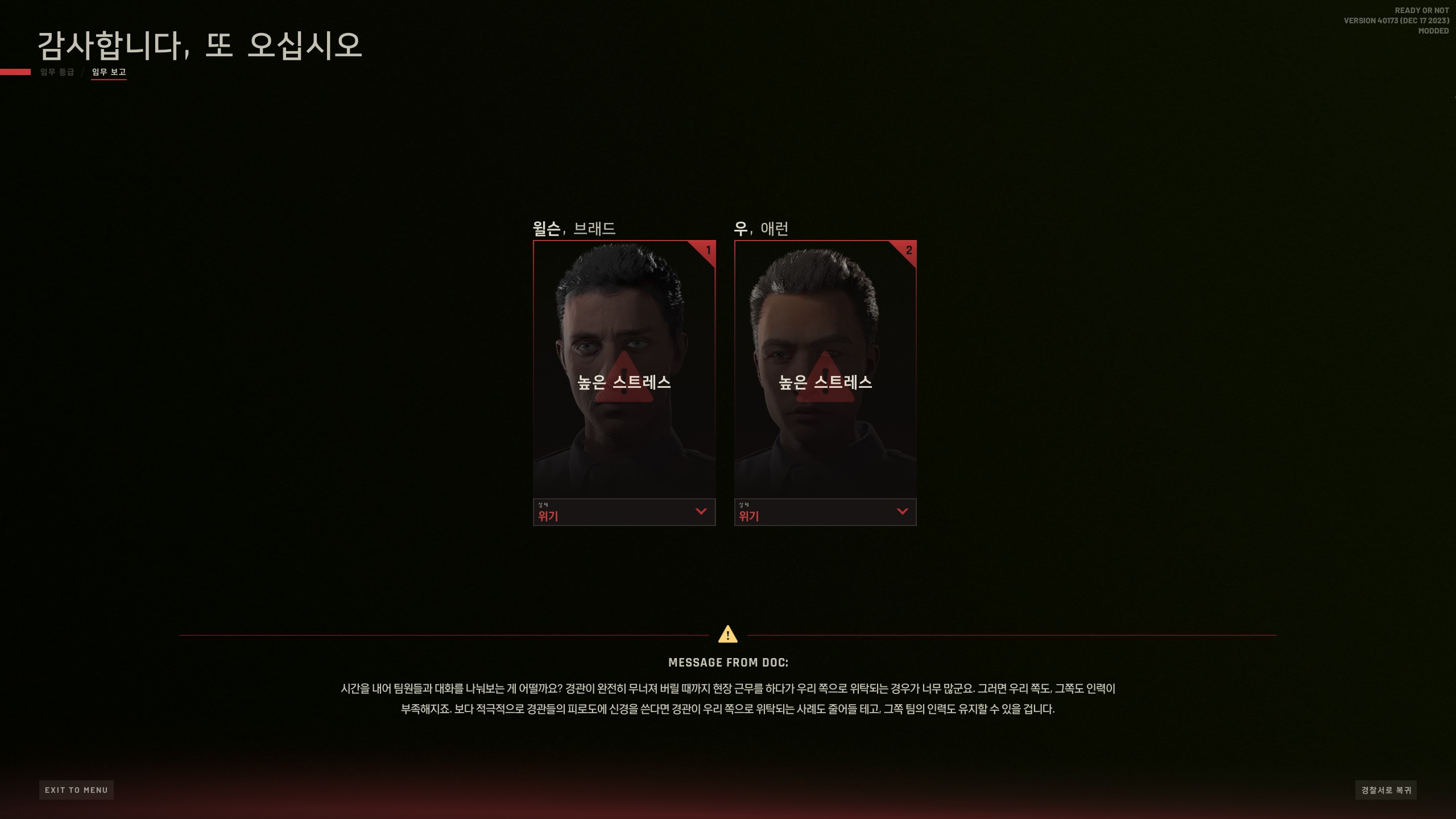 스트레스 관리 해주려면 대원들과 대화를 하라는데 .. 경찰서를 전부 돌아도 대화하는 곳이 없네요 ... ??