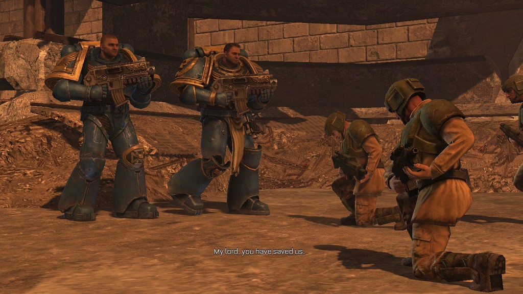 워해머: 스페이스 마린은 이전 시리즈에서 느끼기 힘들었던 스페이스 마린의 강력함을 느낄 수 있는 게임입니다. 이전 시리즈에선 스페이스 마린이 오크 슬러가 보이에게 근접전에서 지는 모습을 심심찮게 볼 수 있었습니다만.. 이번 작에선 주인공의 검기 한 방에 슬러가보이 5명 정도는 쓸려나가는 모습을 볼 수 있습니다. 이런 강력함 때문에 행성을 지키던 가드맨들은 스페이스 마린을 보자마자, 환호성을 지르고 경의를 표하지요.