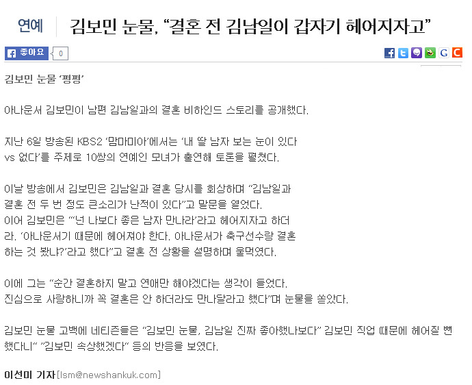기사는 안밤의TV연예로, 영상은 ▷ Ⅱ □ 게시판으로