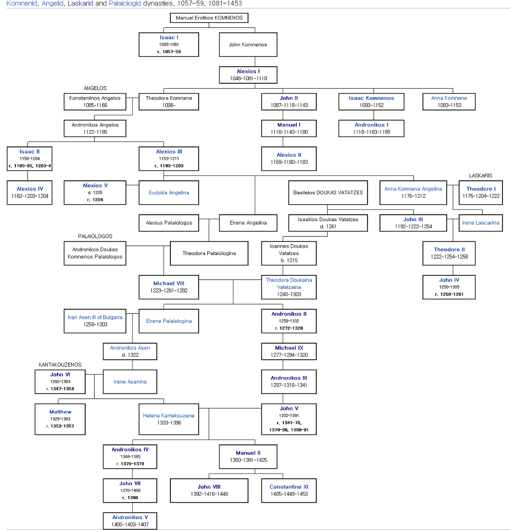 ↓ 콤니노스조 이후의 비잔티움 황실 가계도