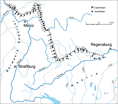 1) 로마인이 게르만인의 침입에 대비하여 현재의 코블렌츠(Koblenz)와 레겐스부르크(Regensbrug)를 연결하여 설치한 방벽으로 기원 전 84년에 공사를 시작하여 50년 경에 준공하였다.