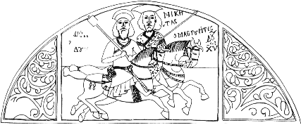 이 트레비존드 전사들의 복장은 트레비존드의 아야 소피아에 있는 15세기의 묘소에서 묘사된 것이며, 비잔티움인들과 라즈족 중에 만연했던 투르크의 영향을 보인다. 위의 말을 탄 인물들은 하얀 모자, 녹색 장화 그리고 붉은 코트(한 사람은 하얀 무늬가 있지만)를 착용한 반면, 서 있는 사람은 하얀 코트와 노란 튜닉을 착용한 상태다.
