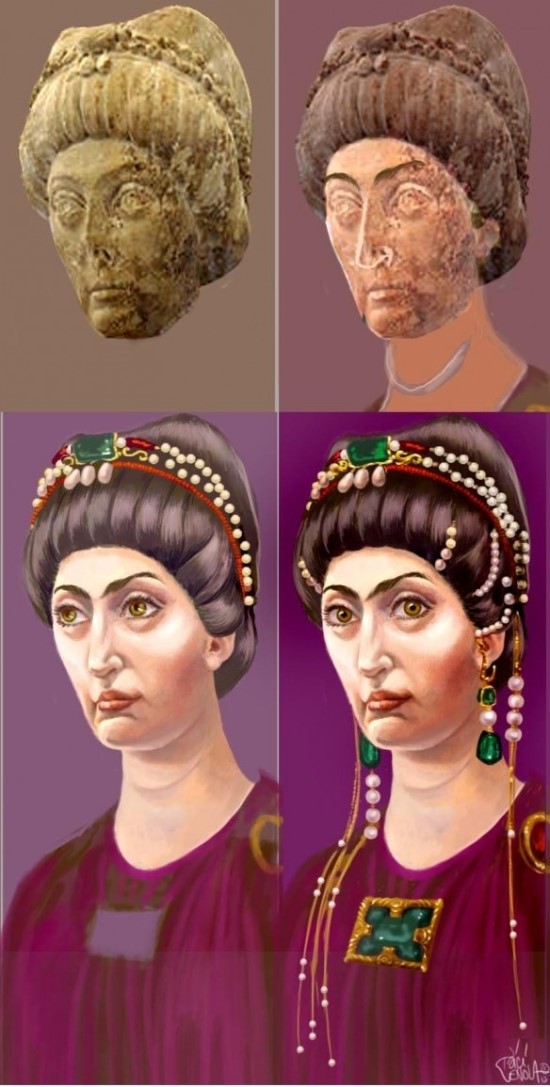 제가 6년 전 포스팅했던, 테오도라 황후가 50대였을 무렵 제작된 석상을 기초로 재구성된 초상화입니다.