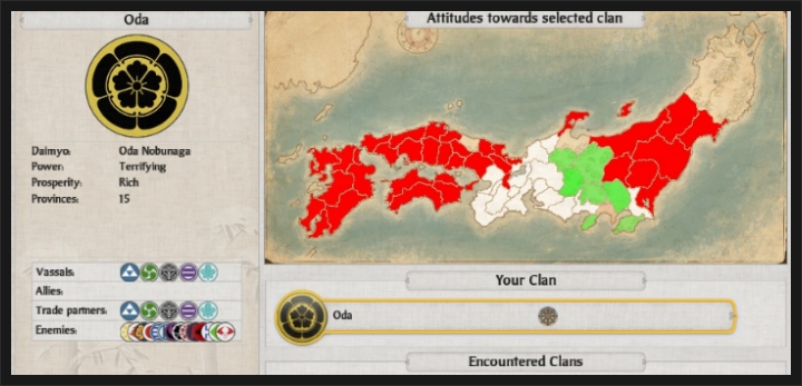 대분열 이벤트 발생 이후, 오랜 동맹이고 뭐고 다 등 돌린 상황에서도 좋은 관계를 유지하고 오래동안 함께 싸운 가신들은 단 한 녀석도 배신하지 않았음. (특히.. 키소家는 정말로 고마운 동맹... 쌩큐, 키소씨..)