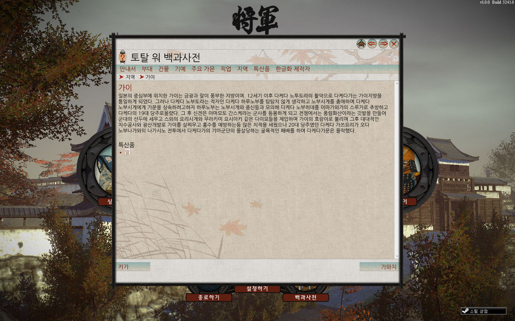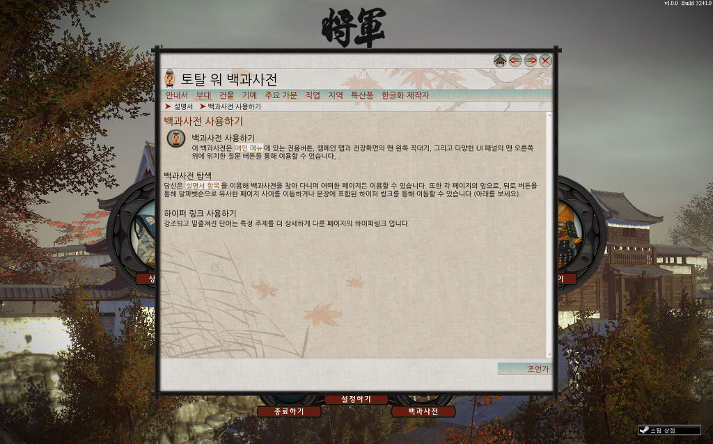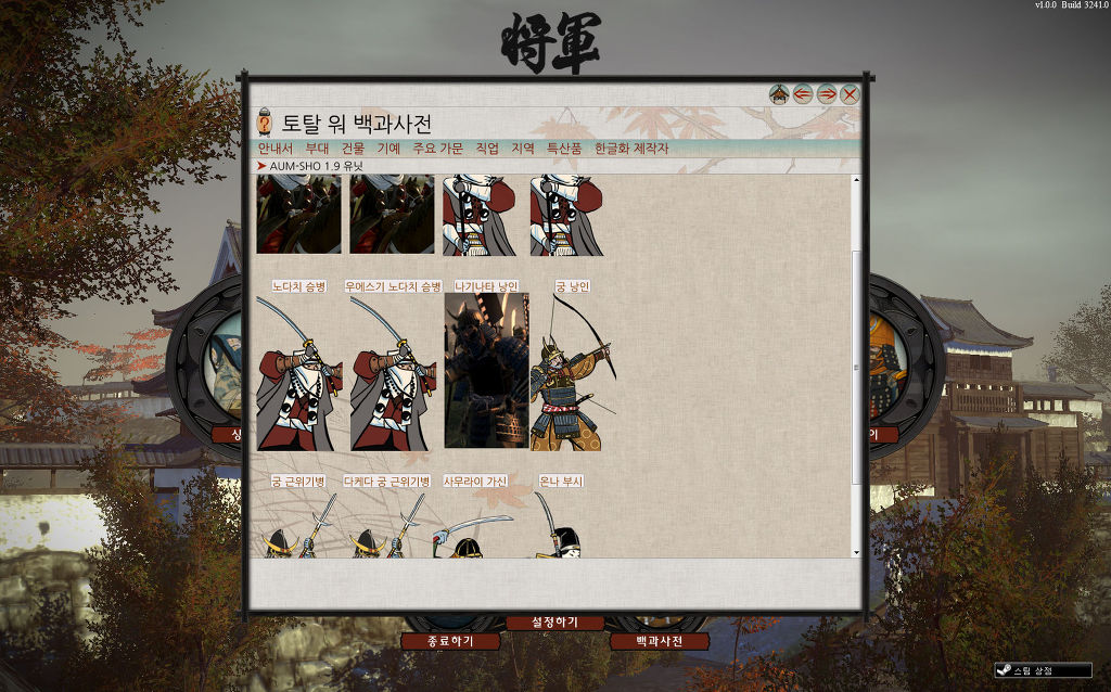 토탈워 : 쇼군2 한글패치 Ver.2.5 한글화 진행도 Perfect 100% [ 편집/번역(총괄) - 가르친링 ] [ 편집/번역(부총괄) -ds2lie ] [ 지원/번역(마무리) -파오봇 ] diplomacy_factor_strings [■ 번역 완료 - 참여자 :숙면중, Romance] unit_info_card_abilities_strings [■ 번역 완료 - 참여자 : Romance] ancillaries [■ 번역 진행중 - 참여자 : Arashi(60%)] battle_script_advice_string [■ 번역 진행중 - 참여자 : Arashi(진행중)] campaign_map_tooltip [■ 번역 완료 - 참여자 : 갱규, 조슈아폰아르님] agent_culture_details [■ 번역 완료 - 참여자 : 유러너스]