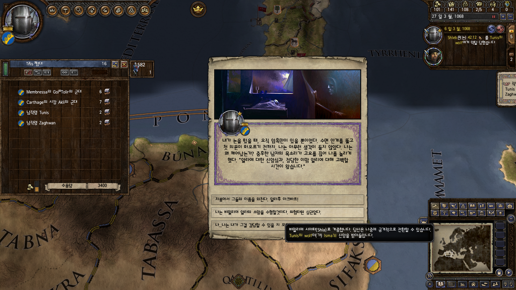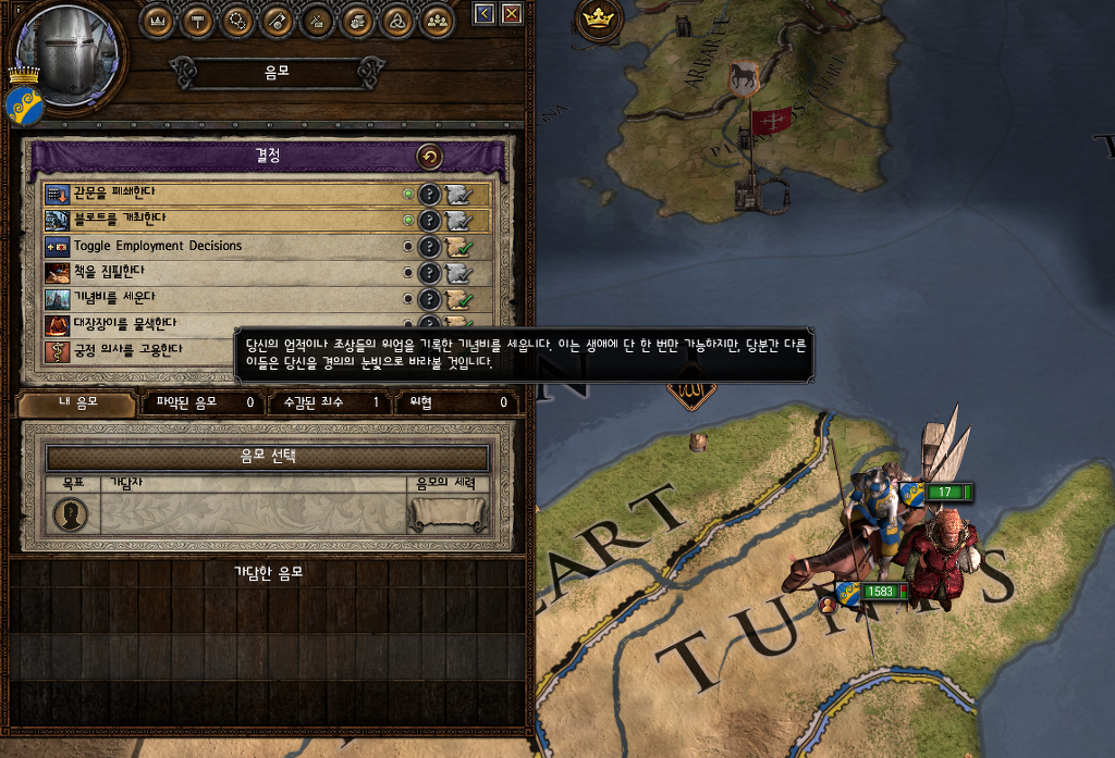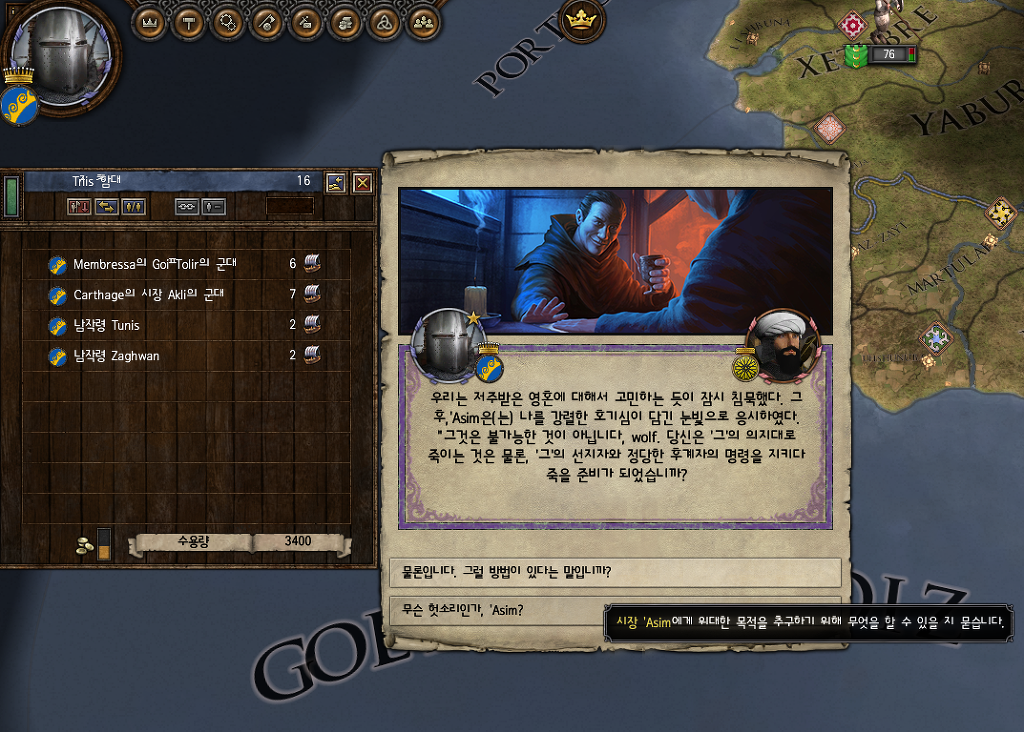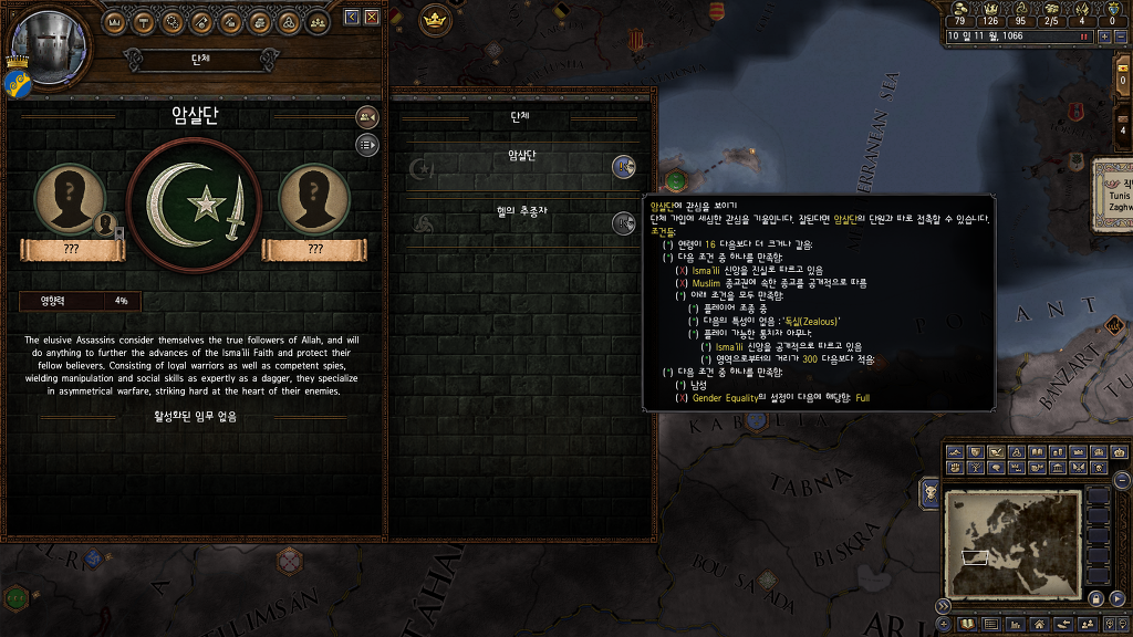 튀니스가 이슬람지역이라 그런가.. 암살단 가입이 되네요? 오호.. hip모드라 그런지 모르겠느데