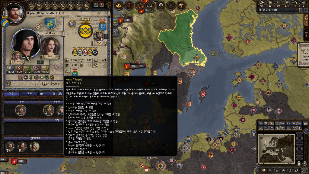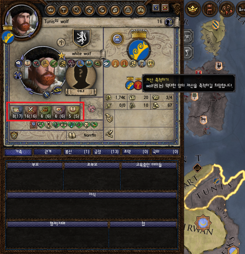 학식은 자신의 국가에 기술발전에 도움이 되는 능력치입니다. 이교도땅에 개종할때라던지..