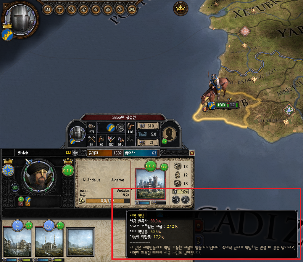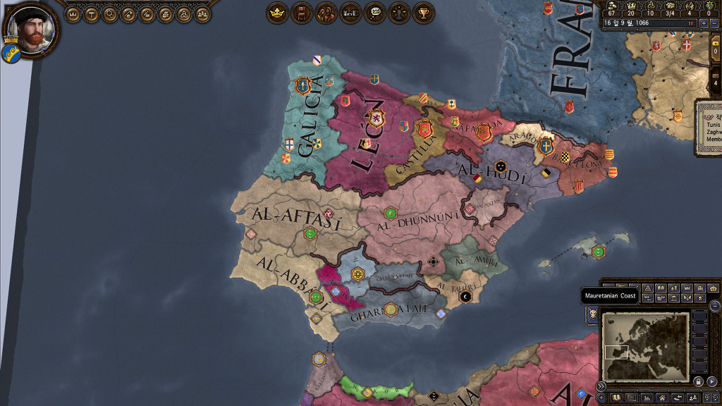 이베리아반도 쪽으로 눈을 돌리니 북쪽 기독교왕국인지 뭔지.. 게임 시작한지 얼마나 됐다고 벌써 싸우는군요