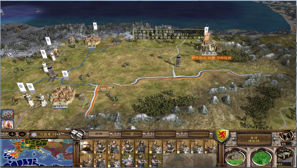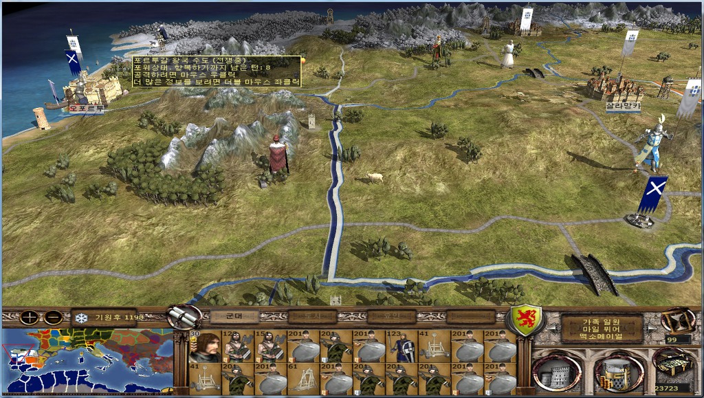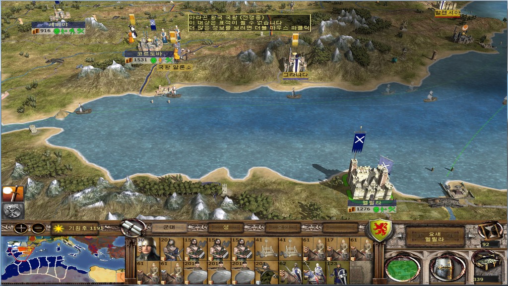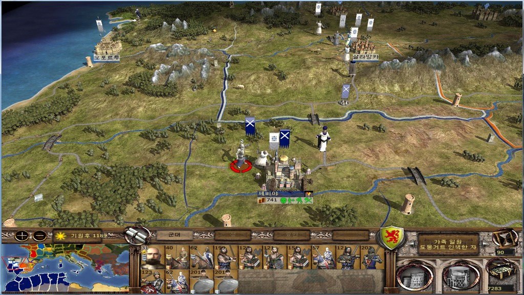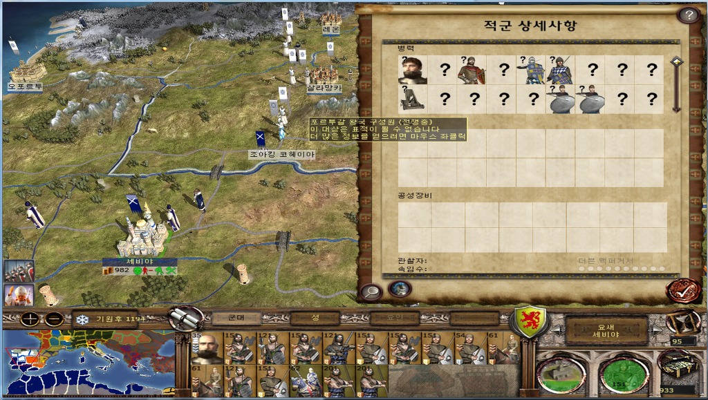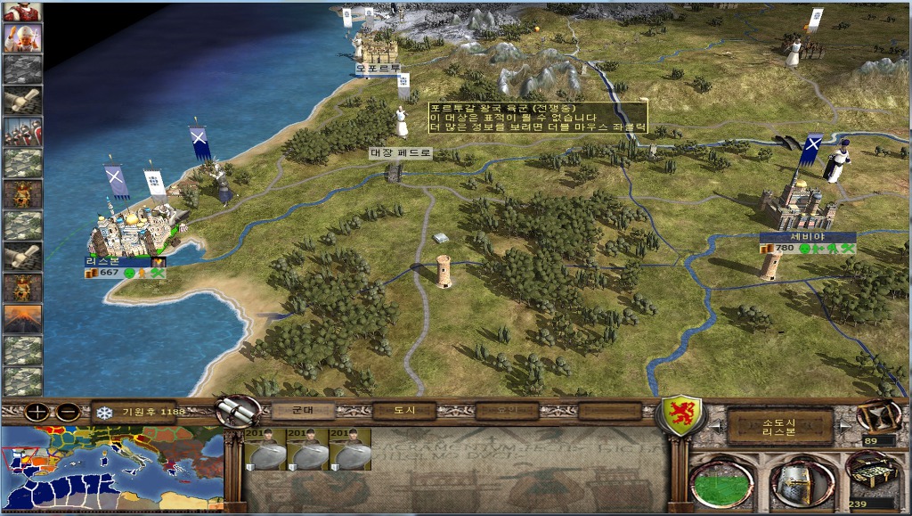 중앙의 세비야에서도 전투가 벌어졌습니다. 서쪽의 리스본도 마찬가지였지만, 포르투갈 왕국은 정찰을 하지 않는 것 같습니다. 이렇게 병력을 조금씩