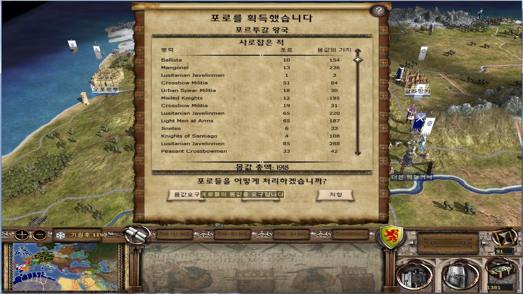 획득한 포로는 몸값을 받고 풀어주었습니다.