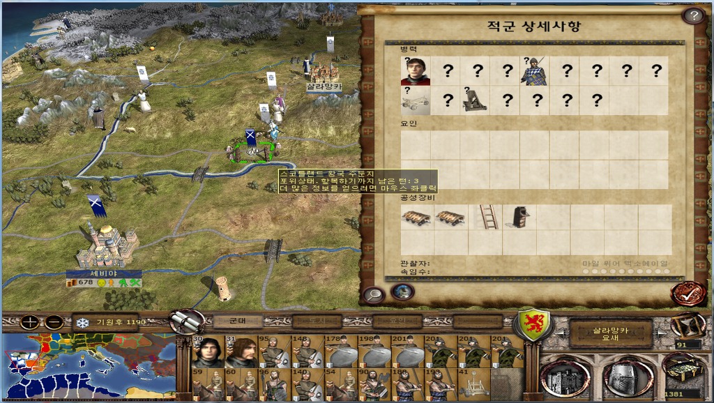 할 겸, 세비야에 주둔중인 스코틀랜드 왕국군도 몸을 일으켰습니다. 그 동안 무어 술탄국과 아라곤 왕국을 견제만 하고