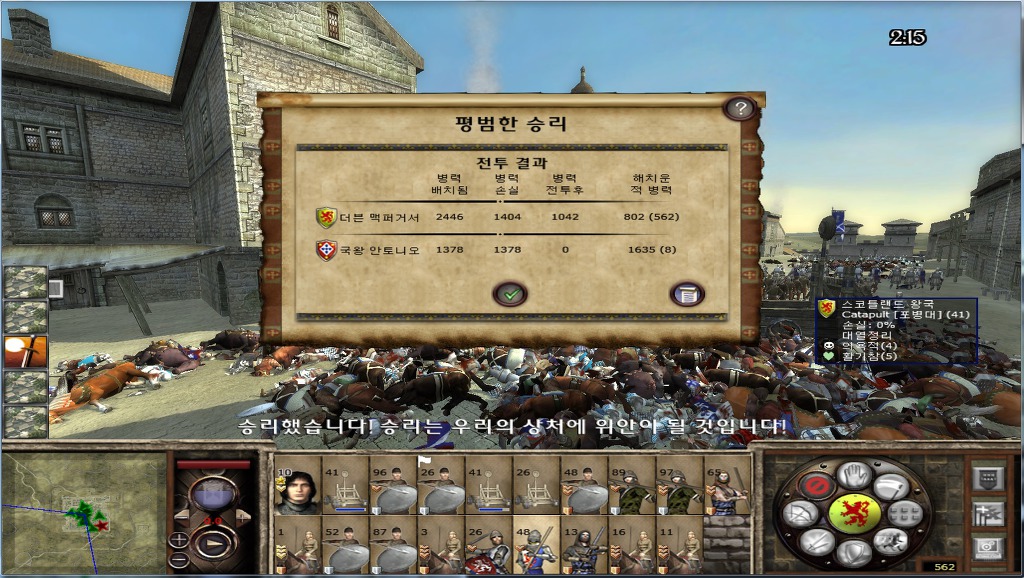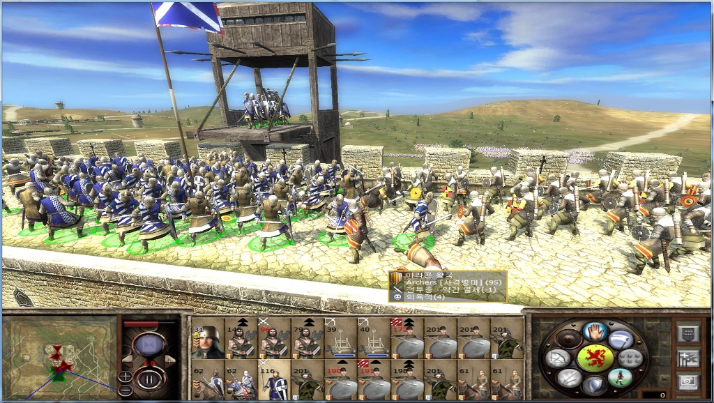 성벽에 올라선 Mailed Foot Knights 와 Highlander 가 대활약을 펼쳤습니다.