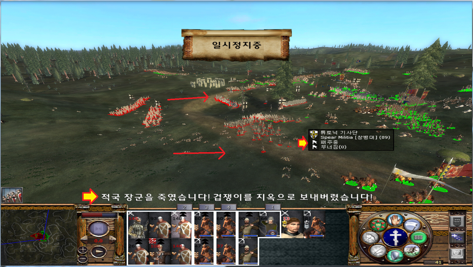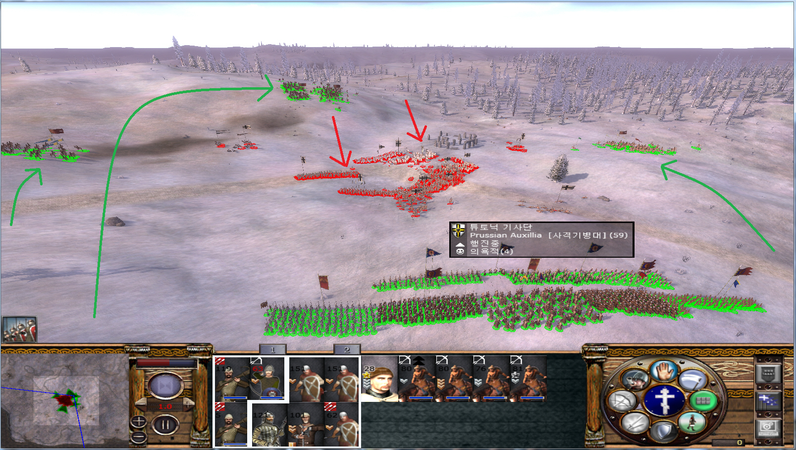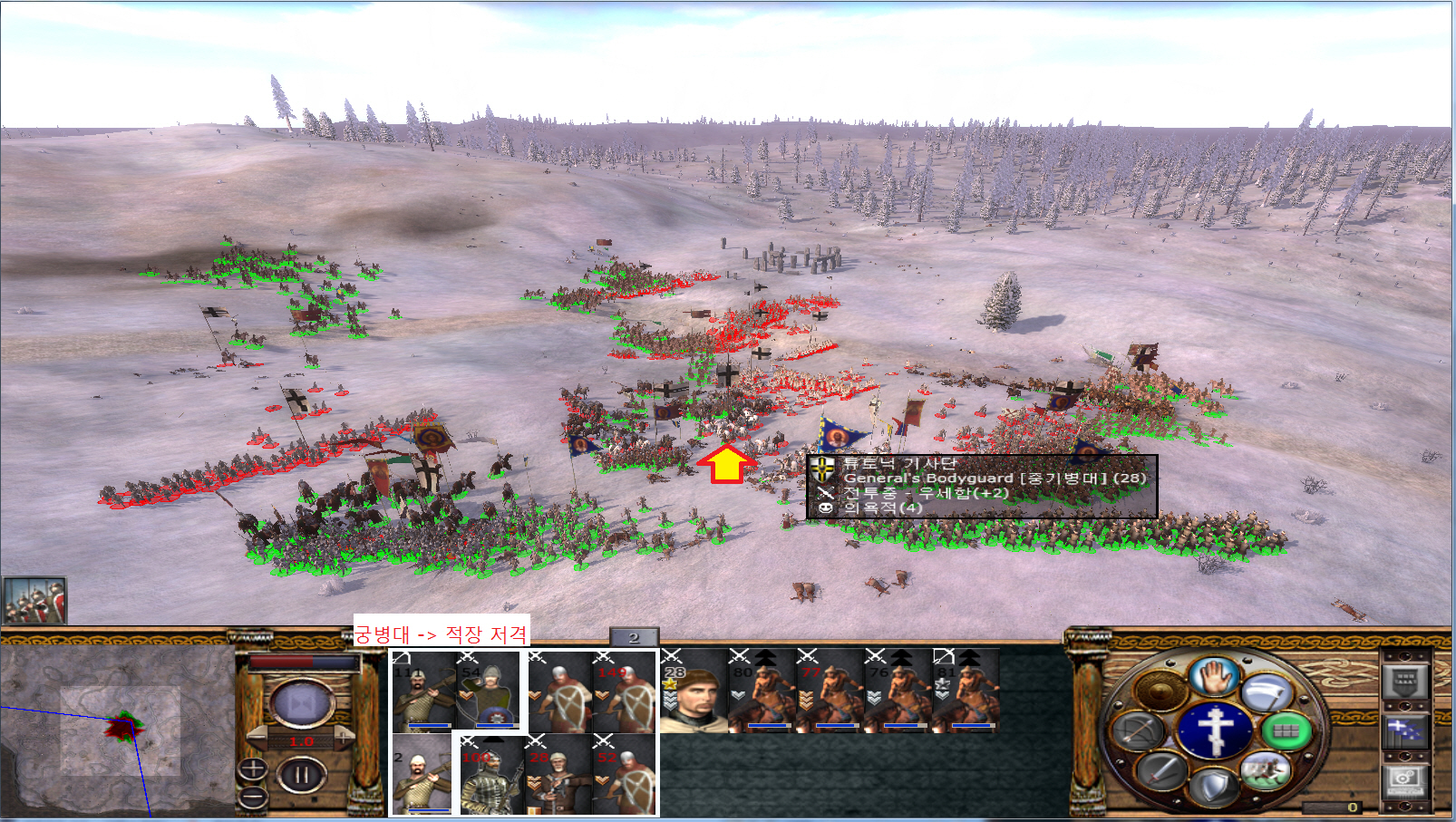 북쪽의 아군이 상대할 튜토닉 기사단도 전력이 만만치는 않습니다. 그런데, 저쪽은 지휘할 장군이 없고 임시 지휘관만 있죠. 그래서 이쪽은 승부를 걸어볼 만 합니다.