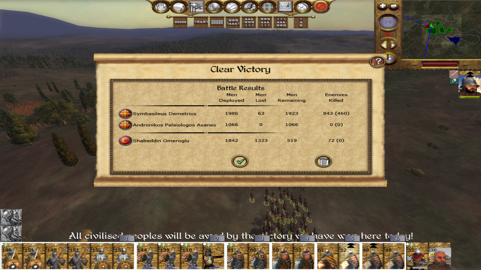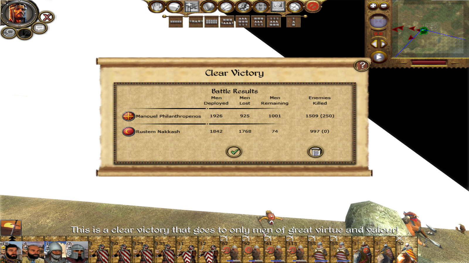 사소한(?) 그래픽 오류와 함께 승리. 참전한 장군 4명 중 2명이 죽었지만 어쨌든 승리는 승리입니다.