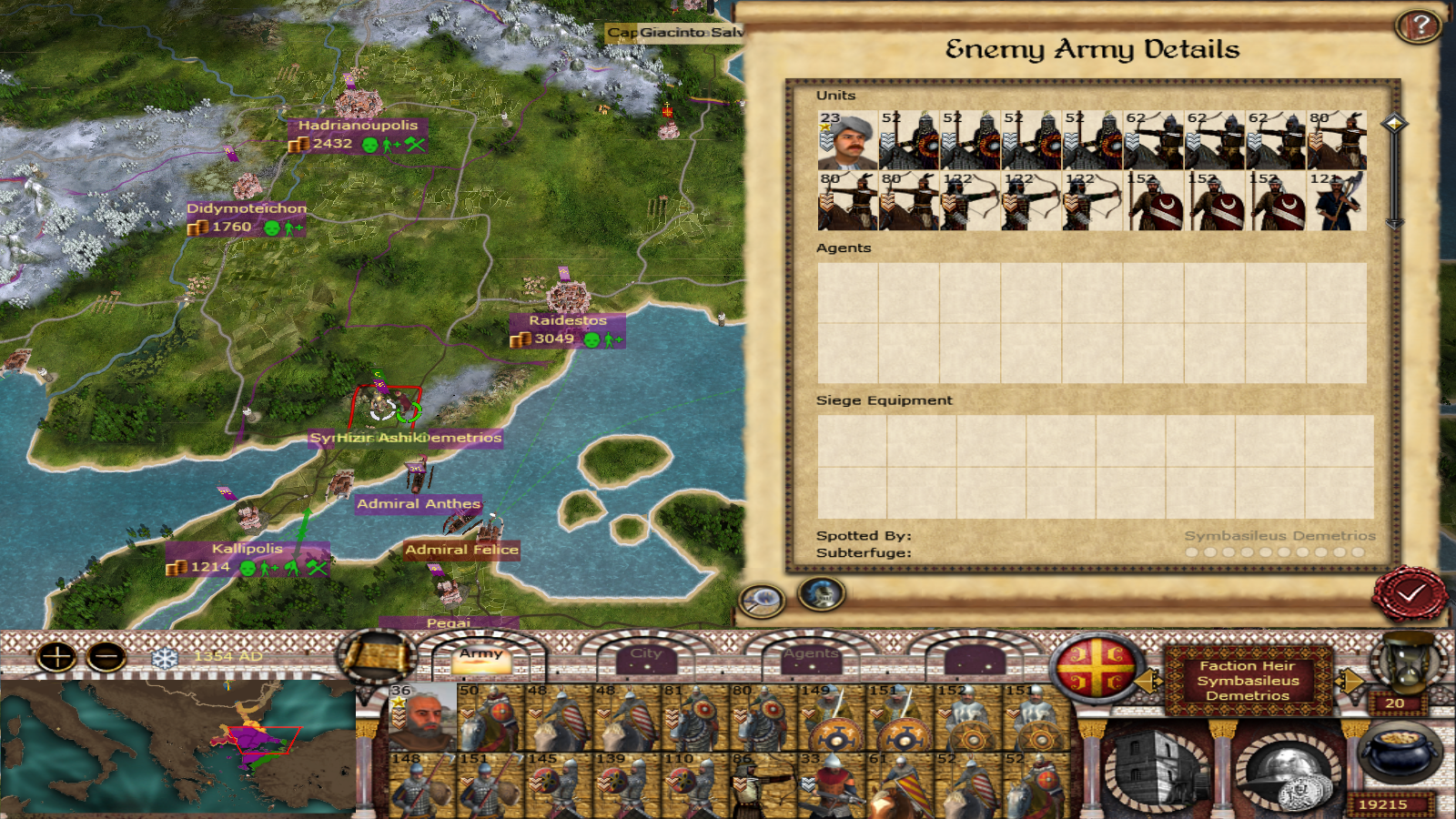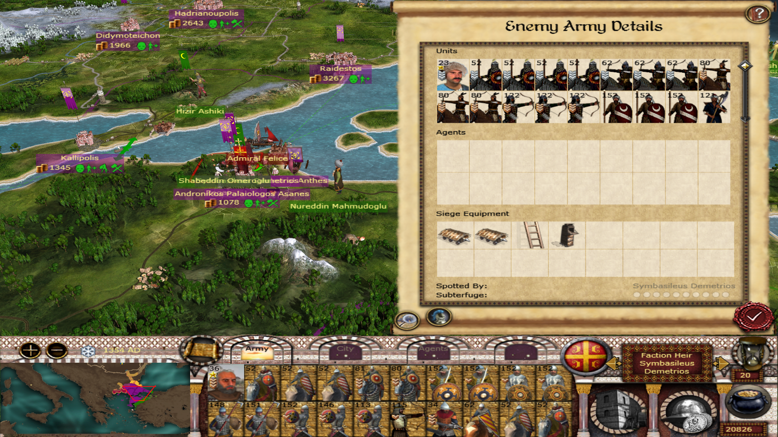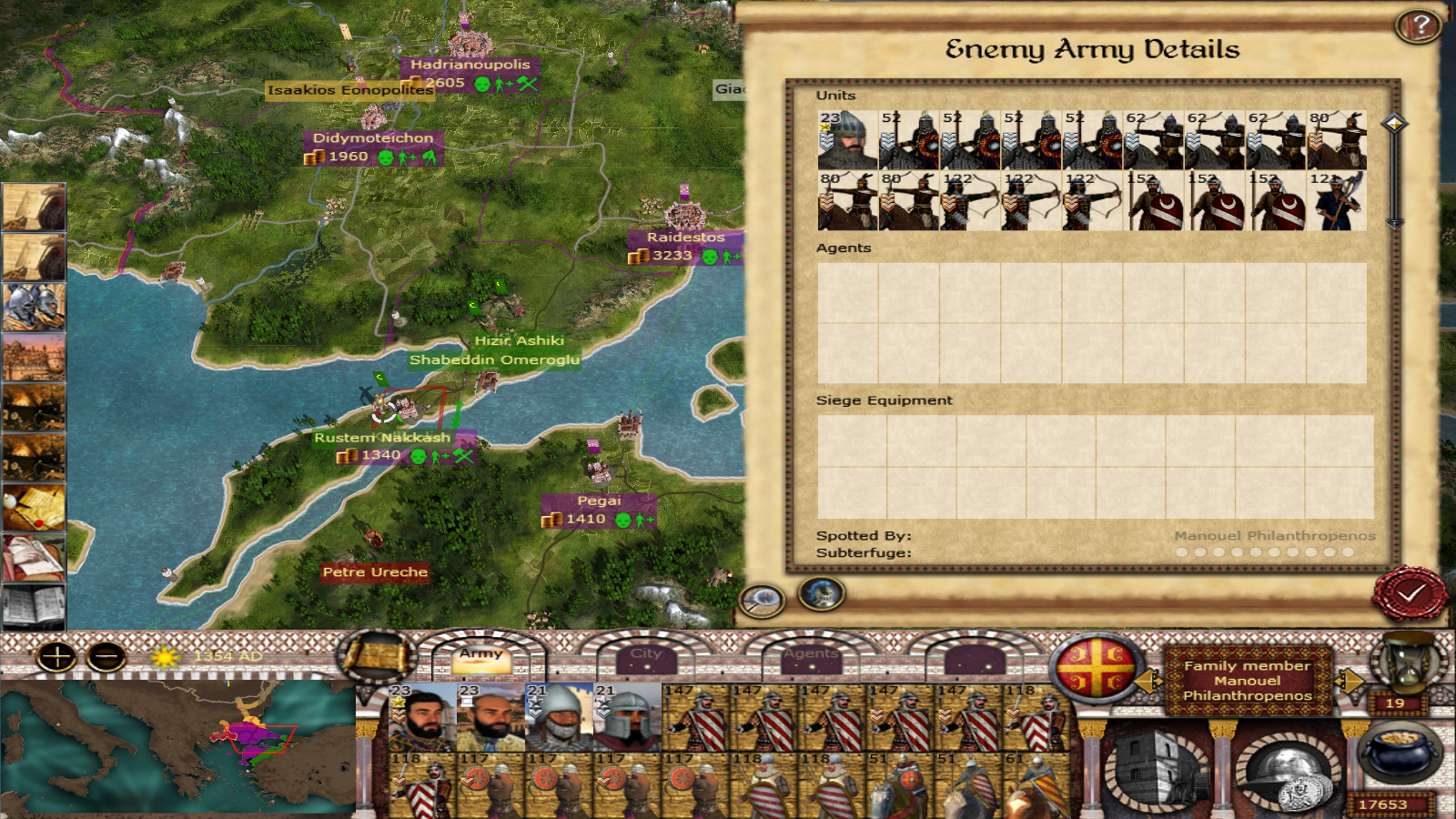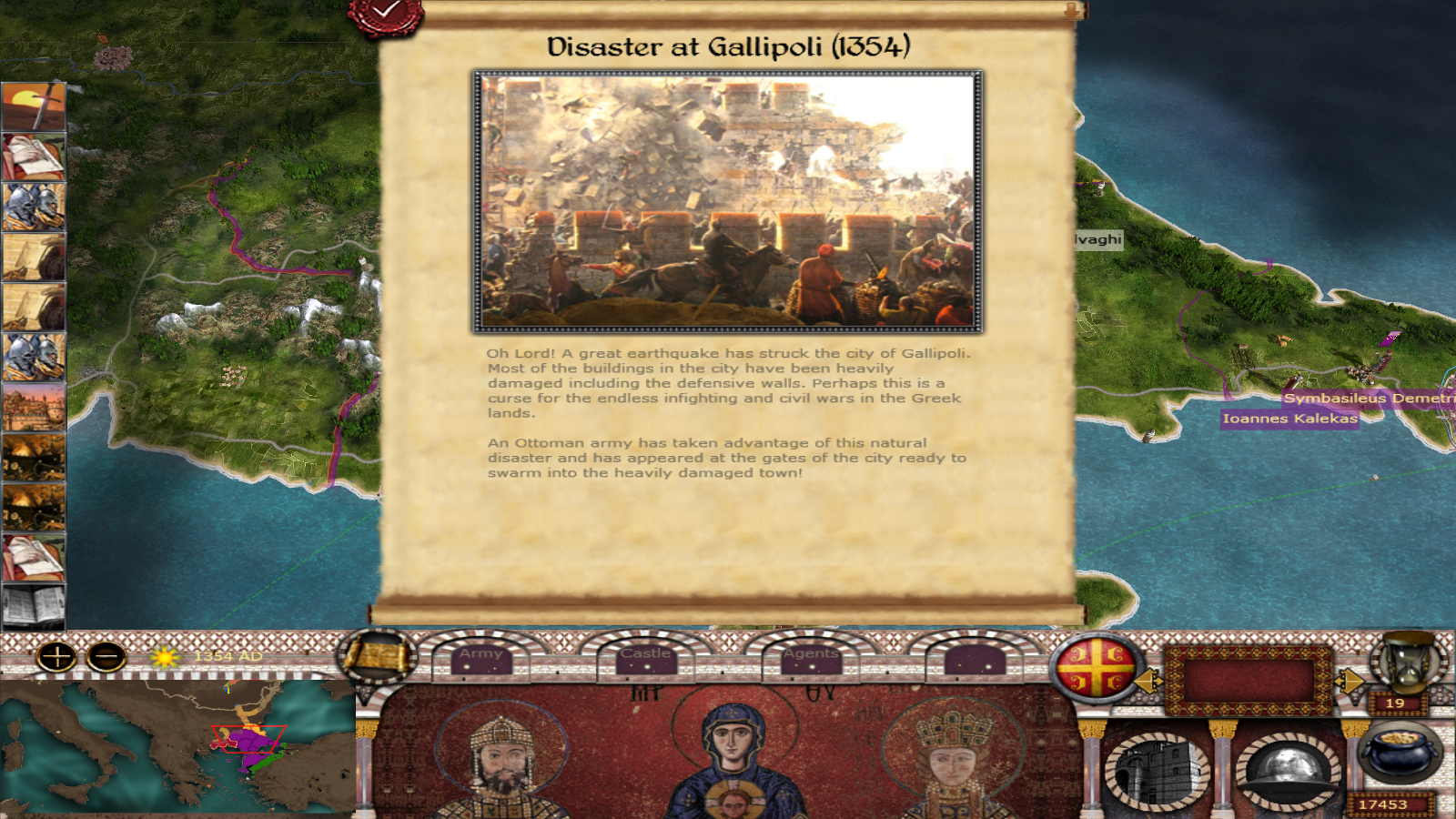 스크립트로 생성된 오스만 3개 군단 중 하나가 칼리폴리를 공격합니다. 공성무기는 없지만 성벽이 무너져서 바로 들어옵니다.