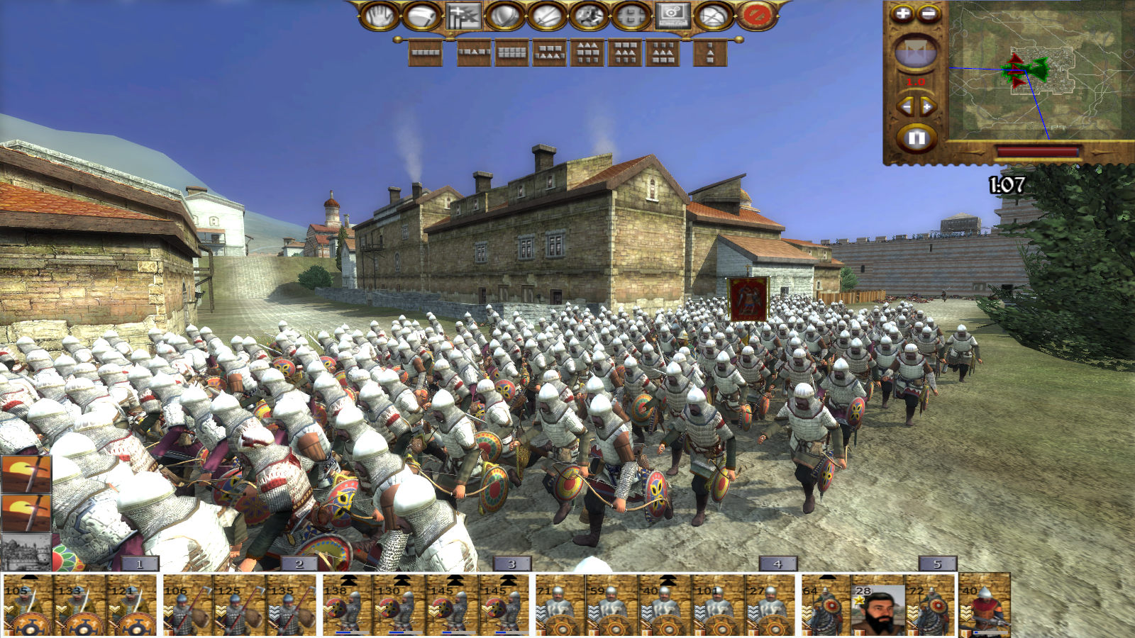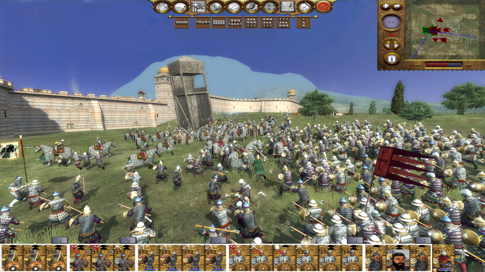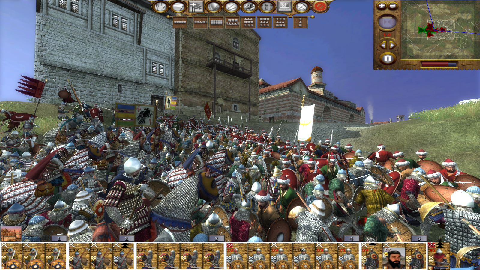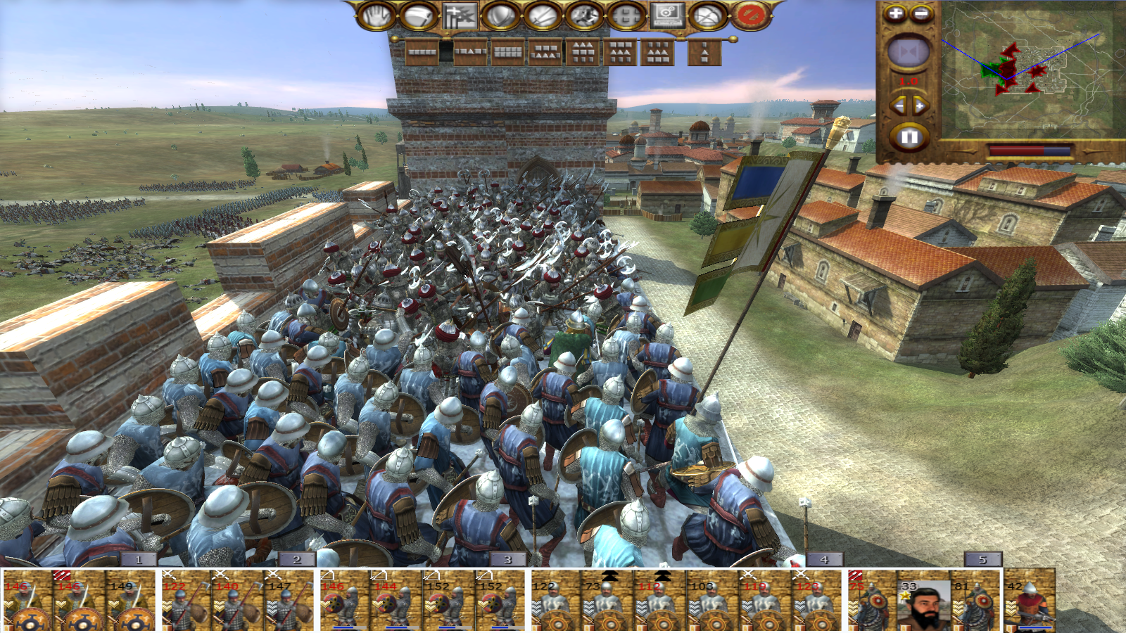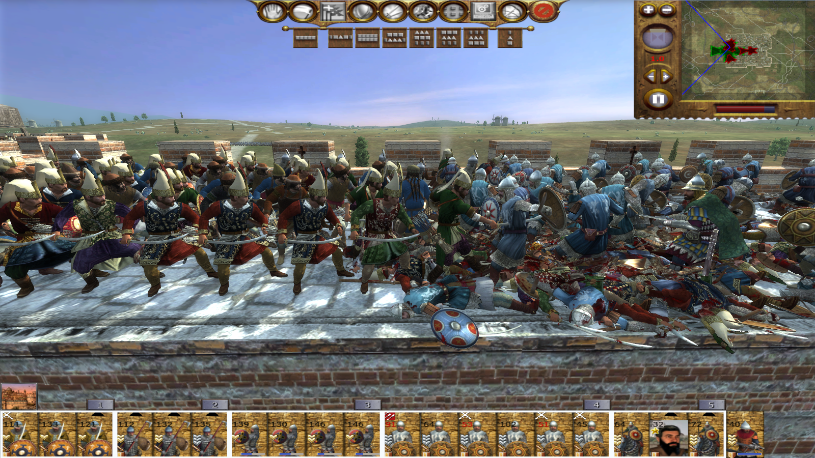 예니체리 근위대인 솔락 궁병과 싸우는 로마군 중보병. 솔락 궁병은 모드 내 궁병들 중 최고의 사거리와 명중률을 자랑하지만 갑옷을 안 입어서 근접전은 별로입니다.
