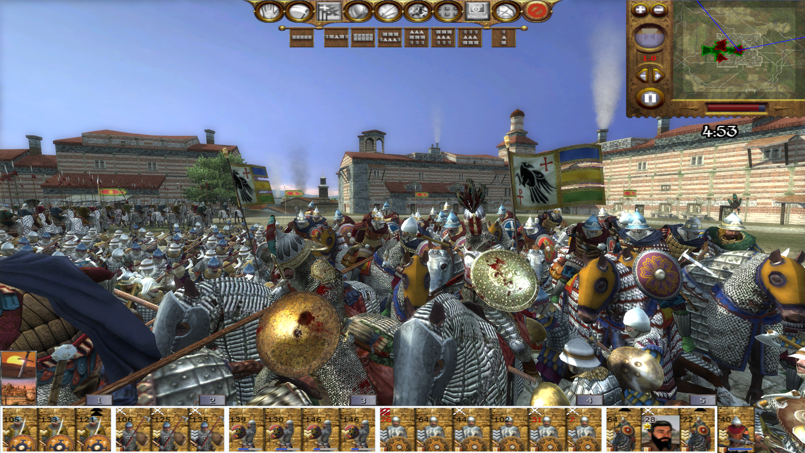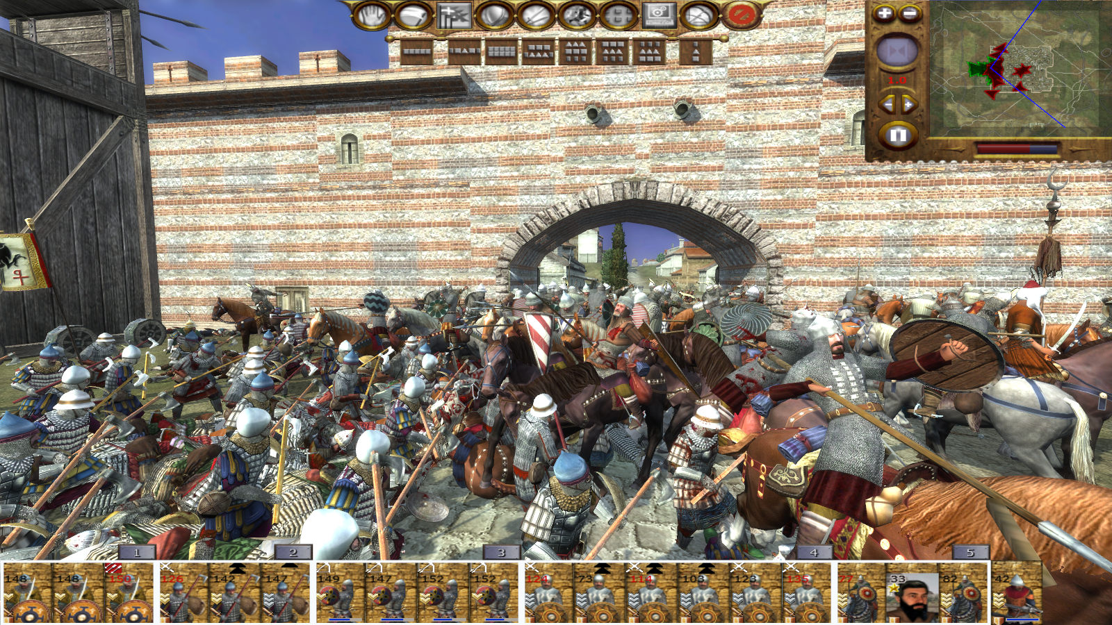 어차피 시가전에서 별 할 일 없는 기병들이 공성탑이라도 막아 보자고 성문을 열고 뛰쳐나왔습니다. 하지만 기동력과 충격력을 잃은 기병은 바랑기 근위대의 도끼밥이 될 뿐입니다.