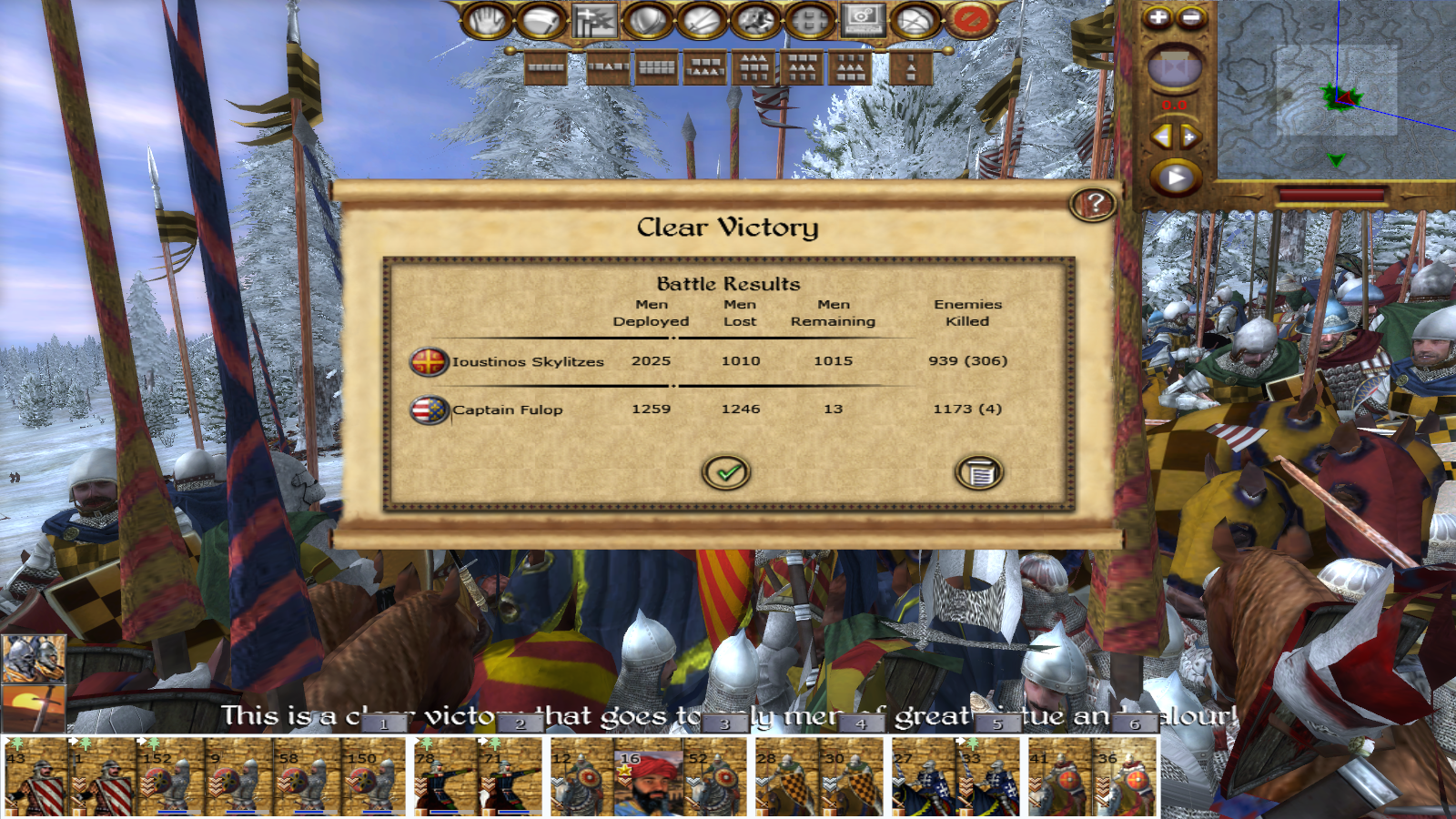할버드병 1부대 잡겠다고 로마군 근위기병대에 라틴 기사대까지 8부대가 사방을 둘러싸고 덤비는 비열한 싸움 끝에 겨우겨우 잡아냅니다.