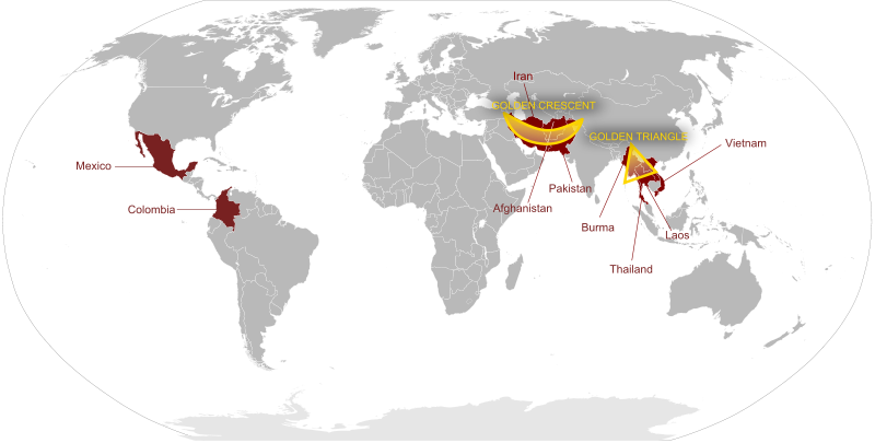 이러한 배경 때문에 프렌치 커넥션이 붕괴된 후 마피아와 다른 범죄조직들은 황금의 초승달지대보다는 동남아시아를 주요 공급원으로 삼게 되었다. 이 지역에서는 전 세계 소비량의 70%를 불법으로 생산하고 있었으며, 홍콩의 중국인 정제소에서는 세사리의 헤로인에 필적할 만한 순도 높은 헤로인이 정제되고 있었다.