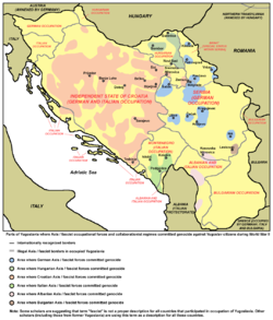 제2차 세계 대전 당시 유고슬라비아에서 일어난 학살 사건을 표시한 지도