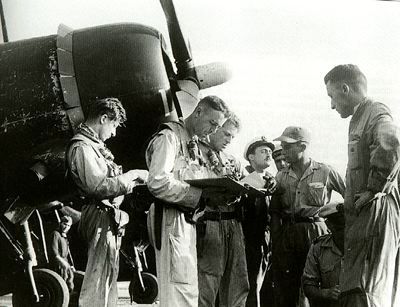디엔비엔푸의 활주로에서... 프랑스 조종사들의 뒤에 보이는 기체가 베어켓이다.