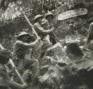 험한 산 위로 대포를 옮기는 베트민