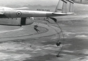 수송기에서 디엔 비엔 푸로 강하하는 프랑스 공수부대