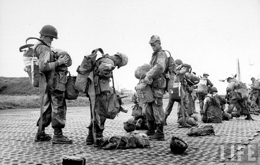 디엔 비엔 푸에 점프하기 위해 준비중인 프랑스군 공수부대