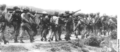 이동중인 베트민군...이미 정규군의 모습을 갖추었다.