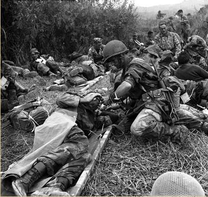 1954년 4월 2일 디엔 비엔 푸에서 부상병을 치료하는 프랑스군