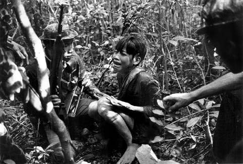 어린 베트콩 포로가 총소리를 듣고난 후 울고 있다. 이 소년은 게릴라들의 연락병이였다.